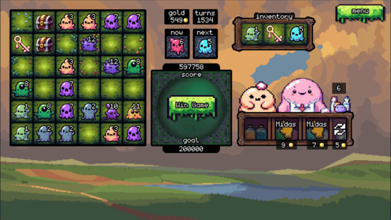Aslimelate is a cozy puzzle game where you merge and evolve your slimes by matching three or more. Earn gold to buy special items to help you. Fill your slime vat to free all the slime, or go for a high score. How far can you evolve your slime?