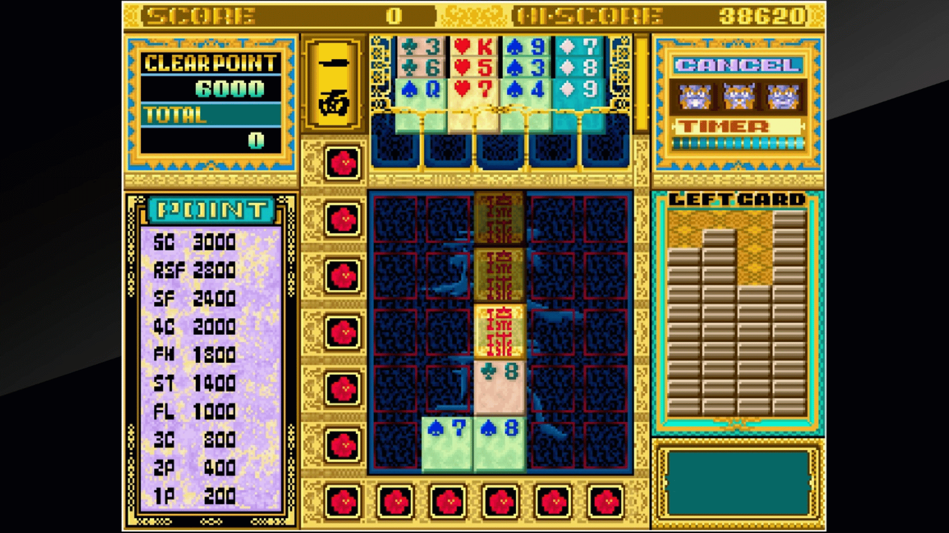 "RYUKYU" is a puzzle game released by SUCCESS in 1990. Choose the cards you want to use from your hand and drop them into the squares to complete the highest-scoring poker hand possible in vertical, horizontal or diagonal lines. So... What happens if you clear the game by placing the Ryukyu card in the middle?