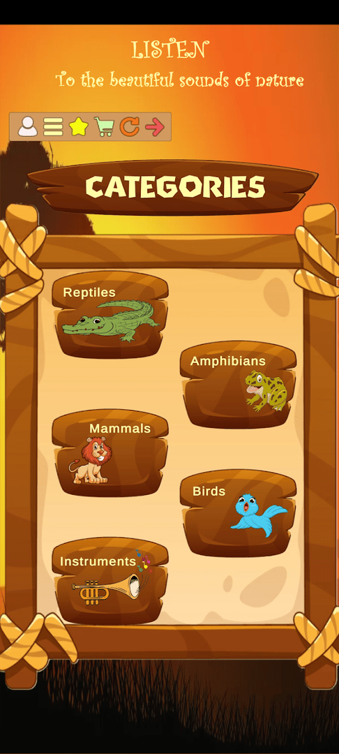 How well do you know your animals and musical instruments? Explore the beauty of nature with your ears. Discover and identify animals and musical instruments by listening to their sounds and rhythms. Listen to nature's acoustics, discover new animals or instruments, and learn fun new stuff!
