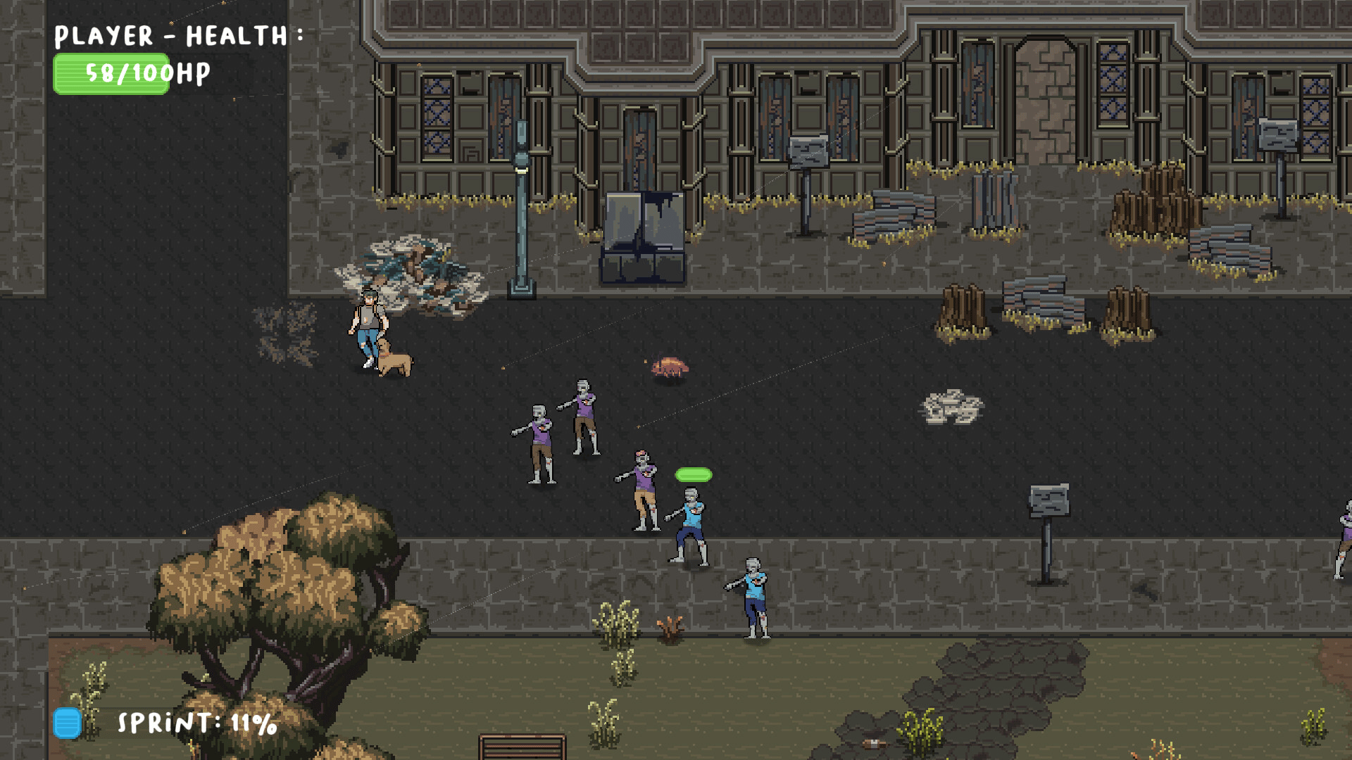 In Apocalypse? No! you play as a survivor accompanied by his faithful dog in a world in ruins, survive against the creatures, help the characters of this world, discover very varied maps: From a peaceful forest, through survivor camps to ruined cities.