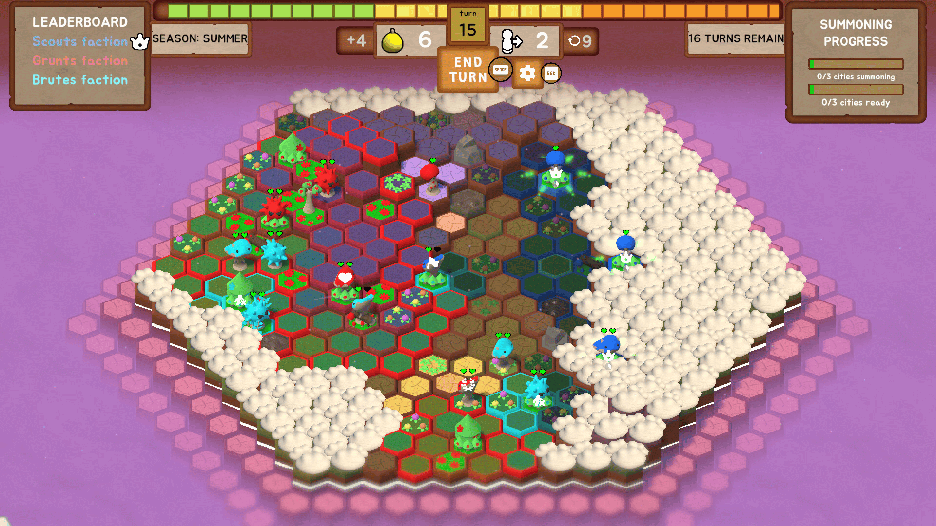 Winter approaches, Great Spirit. Rival Tree Kingdoms peck at your borders... Will you conquer, outlast, or outwit them in this bite-sized turn-based 4X struggle? Command your Treelings, adapt to the seasons, and etch your legend into the bark of history, before the cold claims all.