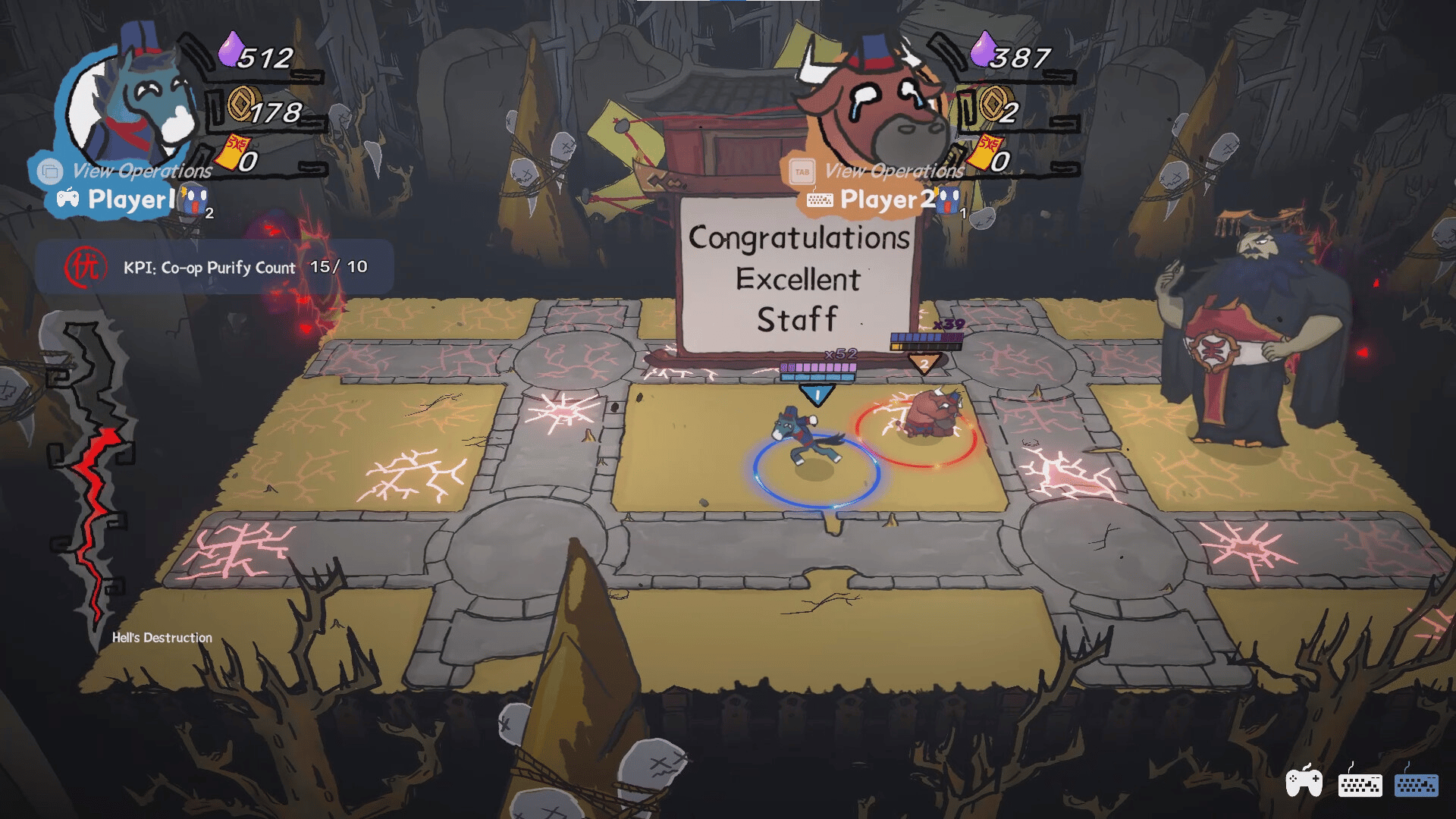 Controlling the Ox-Head and Horse-Face, either single-handedly or in pairs, to punish evil spirits in hell and make them drink the soup of Meng Po to reincarnate. However, be cautious of these evil spirits with different abilities.