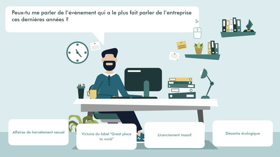 Very Unserious Game is a short narrative game (approximately twenty minutes), playable only with a mouse. A parody of serious games and a satire of the wonderful world of business, this game takes you on a unique job interview to join Innovality, an innovation startup that innovates (well... in theory). Through a series of absurd e-learning quizzes and situations as familiar as they are uncomfortable, you'll discover the joys of corporate jargon, vague objectives, and "inspiring" corporate values.