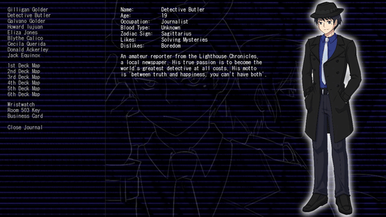 Follow Detective Butler and his sidekick Gilligan as they solve a locked-room murder during a haunted cruise ship's maiden voyage. Can you solve the mystery before Detective Butler reveals the answer?