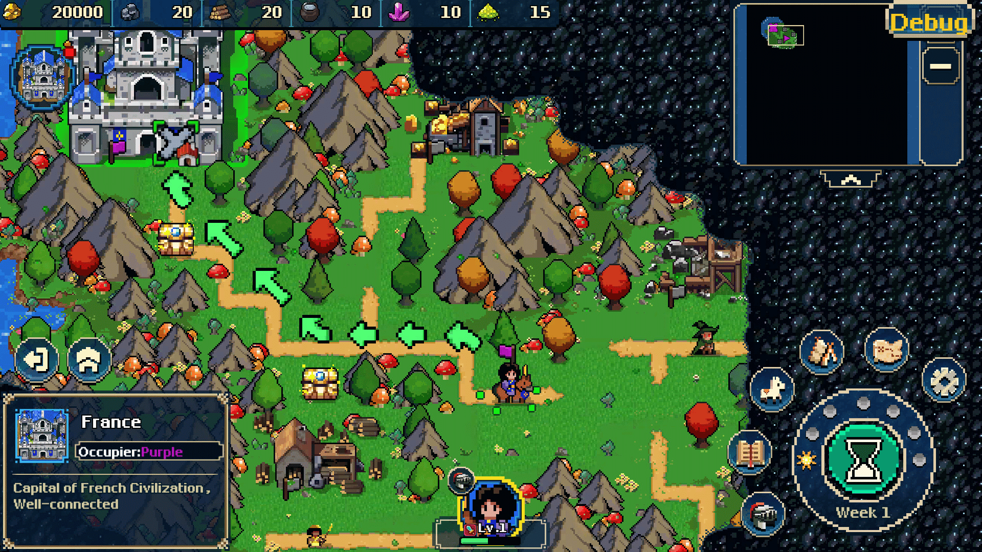 Strategic game inspired by "Heroes of Might and Magic" & "Hero's Hour" with auto-battler combat. Multiple races embody real-world civilizations (China, France, etc.). Randomly generated maps ensure unique playthroughs. Adapt, expand, and conquer in a dynamic world!