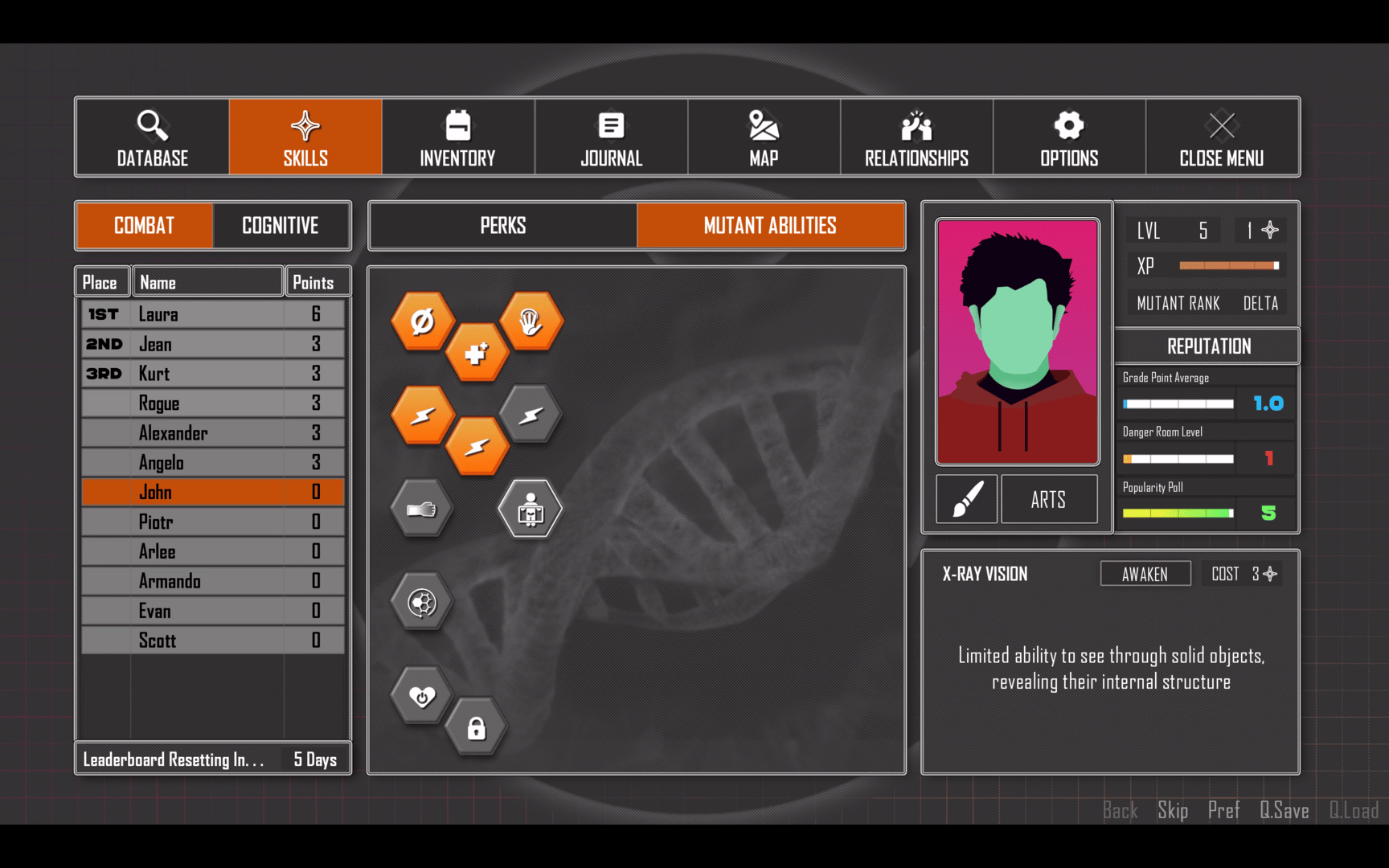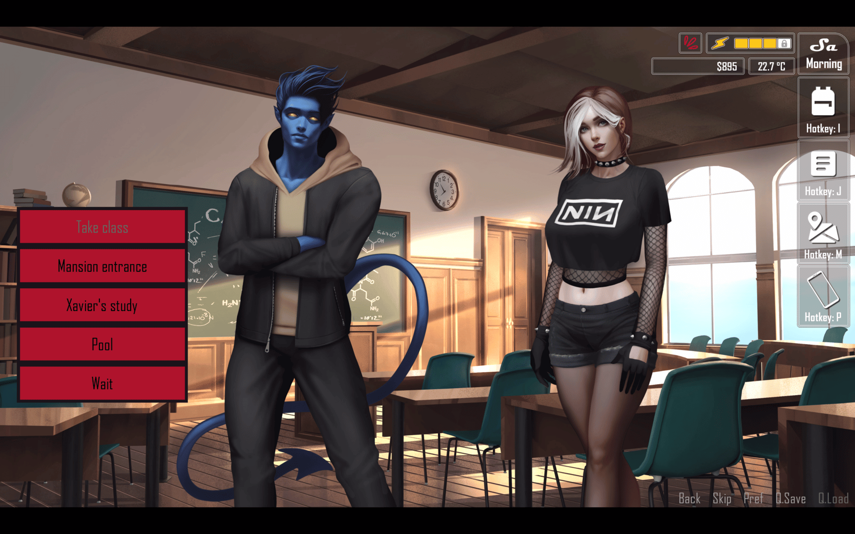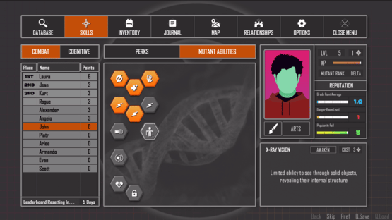 You play as a mutant who is given refuge and enrolled into a school of mutants by Charles Xavier. At the school you meet other mutants and live amongst them, growing your powers, learning, and developing budding relationships with others.