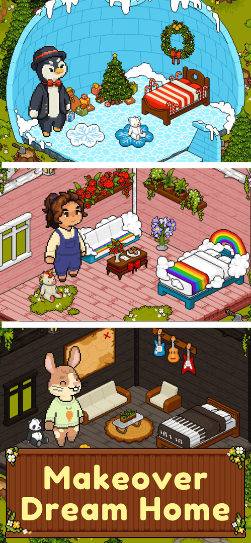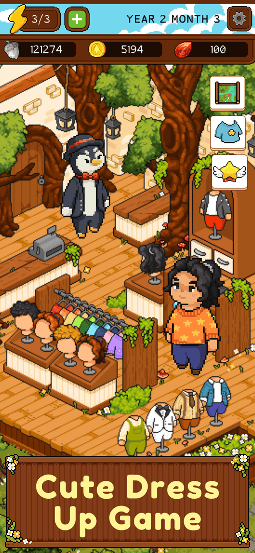 Relax in the fairytale oasis of talking pixel animals, makeover your dream cozy home, explore the adorable town of Wildleaf Forest in this healing life sim! Prepare delicious coffee and croissants in the adorable café game, harvest juicy crops in the farming village and earn idle money to live your dream forest life sims. Play this cute adventure game with money education through life simulation now, and experience cozy forest life!