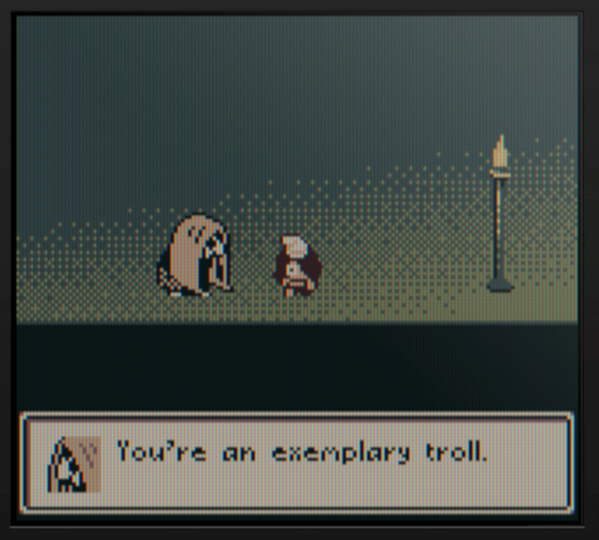 You play an old mother of trolls who adopts and raises a human child. You decide where he spends his time and can talk to him once every three months.