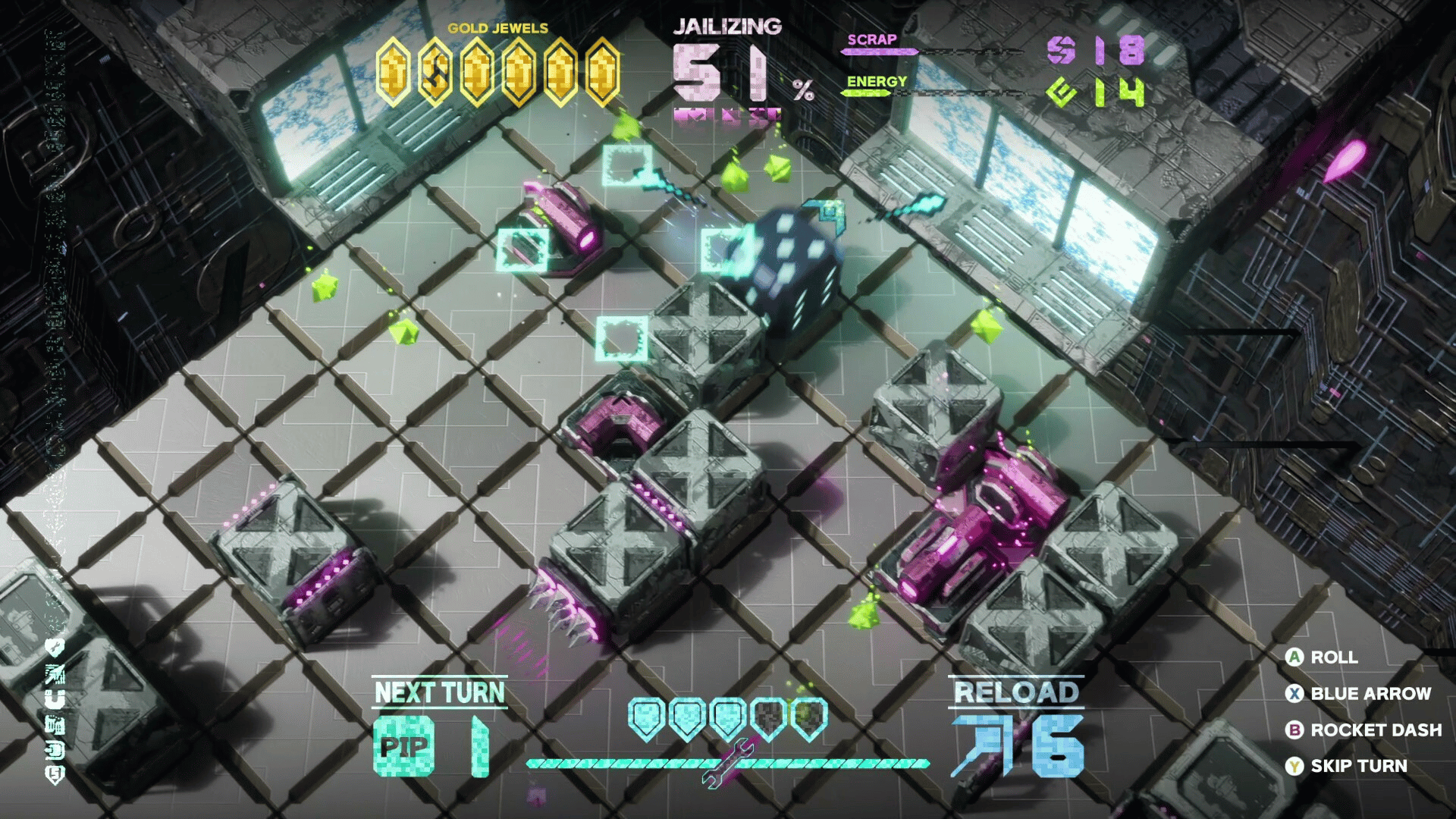 As the last pilot aboard the dice-shaped combat machine [ Dice-Rover ], destroy threatening objects with exhilarating action. Power up your Dice-Rover enough to find and destroy the ultimate target, [ JAIL DICE ].
