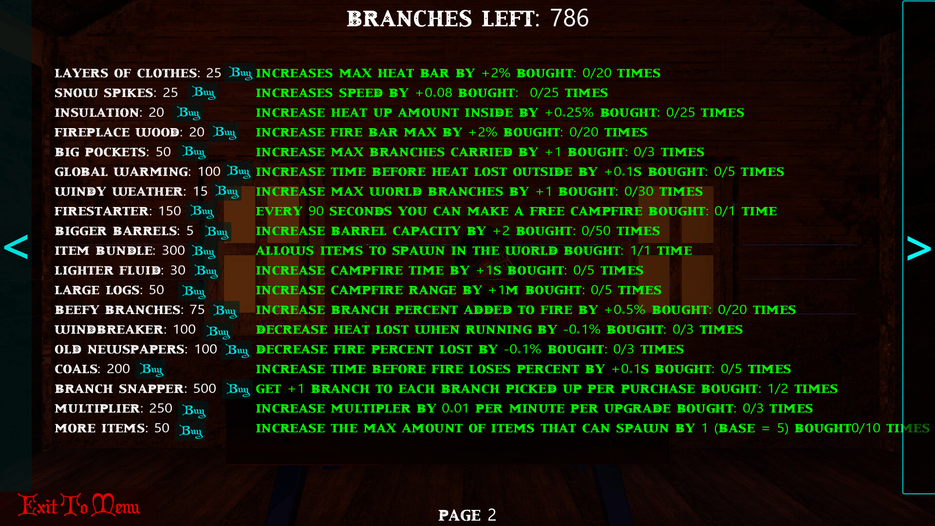 Challenge the cold in this cozy, rogue-like survival game. Collect branches to keep your fire lit, choose shop items and upgrades to increase your chances of survival with dozens of ways to modify your game play. Remember, the cold always wins.