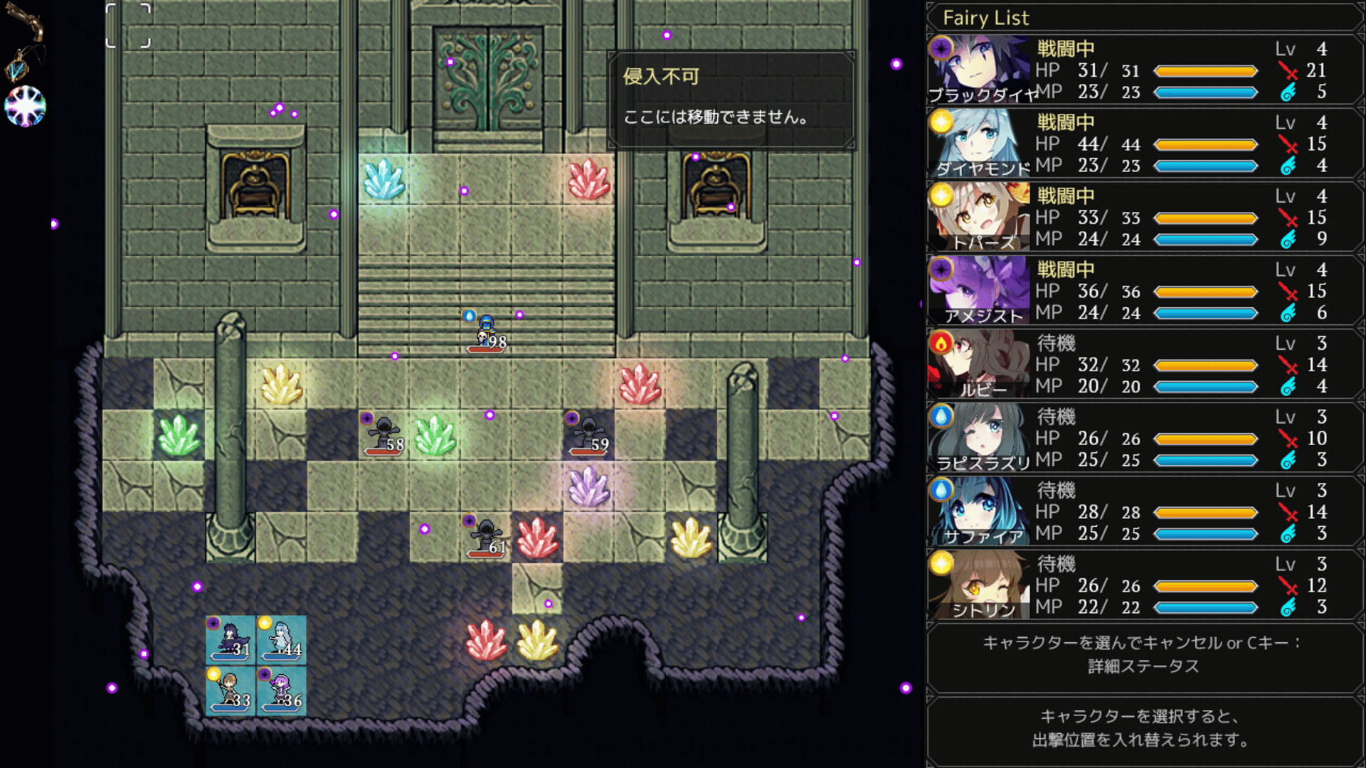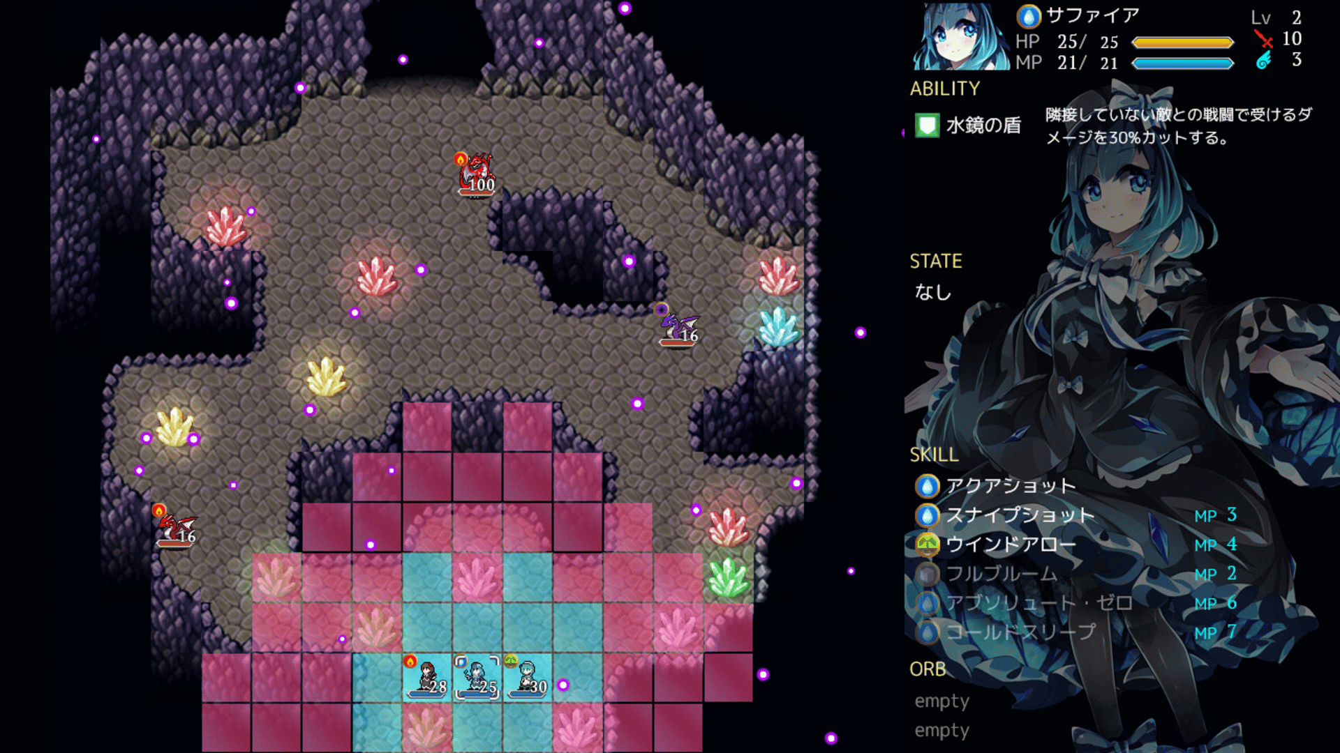 "Jewel Spirits" is a new type of game that combines turn-based strategy (strategic simulation RPG) with party-building roguelite elements. Build a party of jewel spirits with unique abilities and kick demons to the curb with your own unique composition!