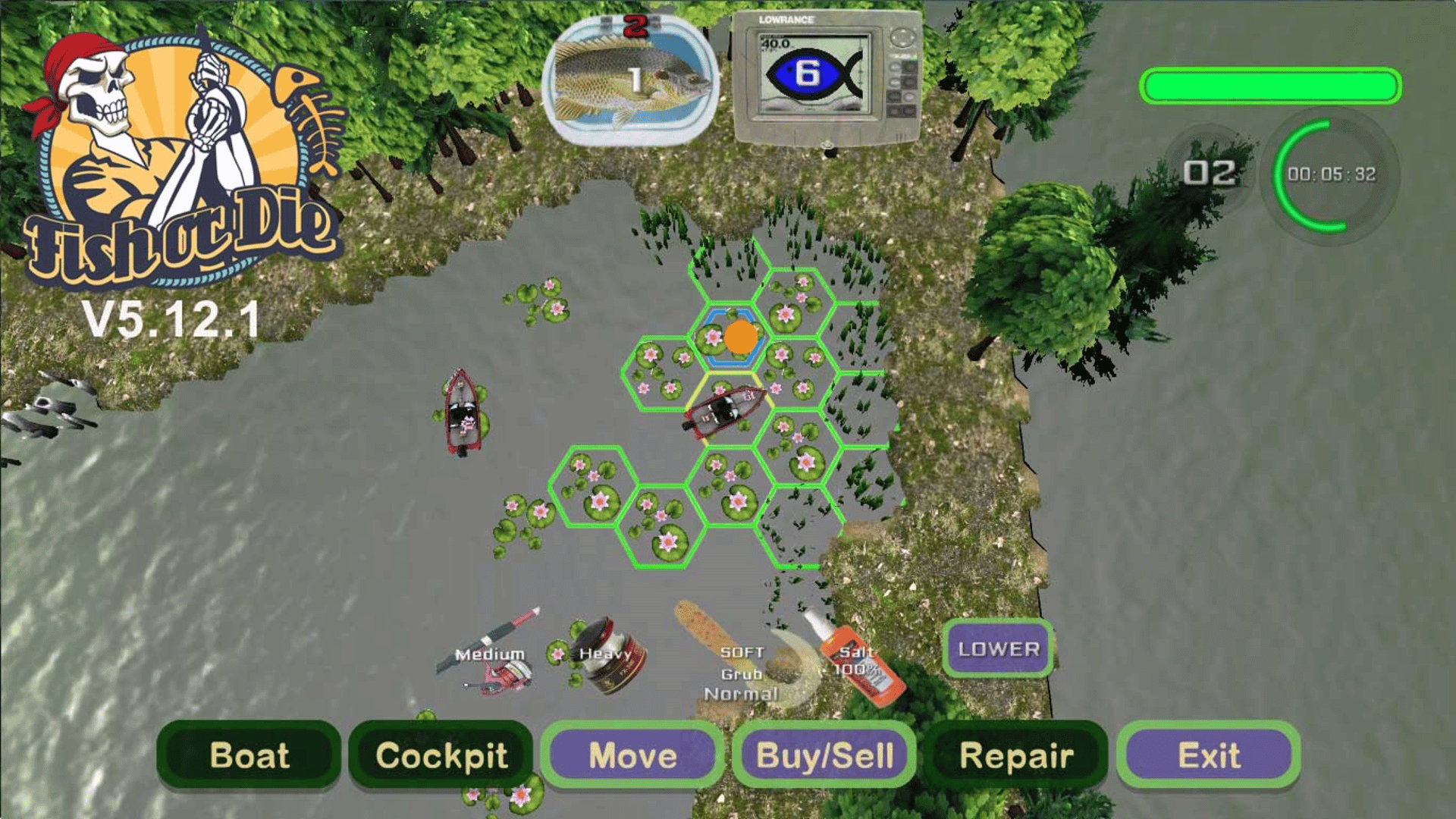 Enter a fishing tournament. Climb the leader board with your five biggest trophy fish. Try not to get snagged, lose your lures, or damage your bass boat. Sell fish to earn cash for Tackle Store.