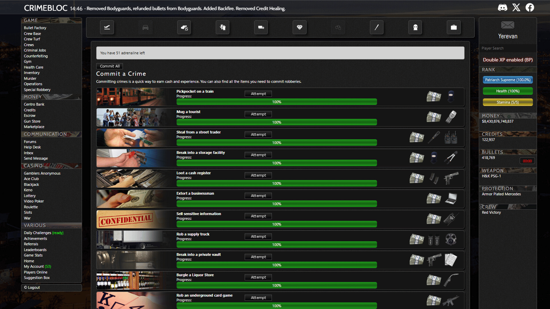 Free-to-Play Text-Based Mafia MMO Set in the Eastern Bloc. A gritty text-based MMO where you rise through the ranks of organized crime in the Bloc. For 18 years, players have forged criminal empires, fought brutal turf wars, and survived in a world where betrayal is currency.