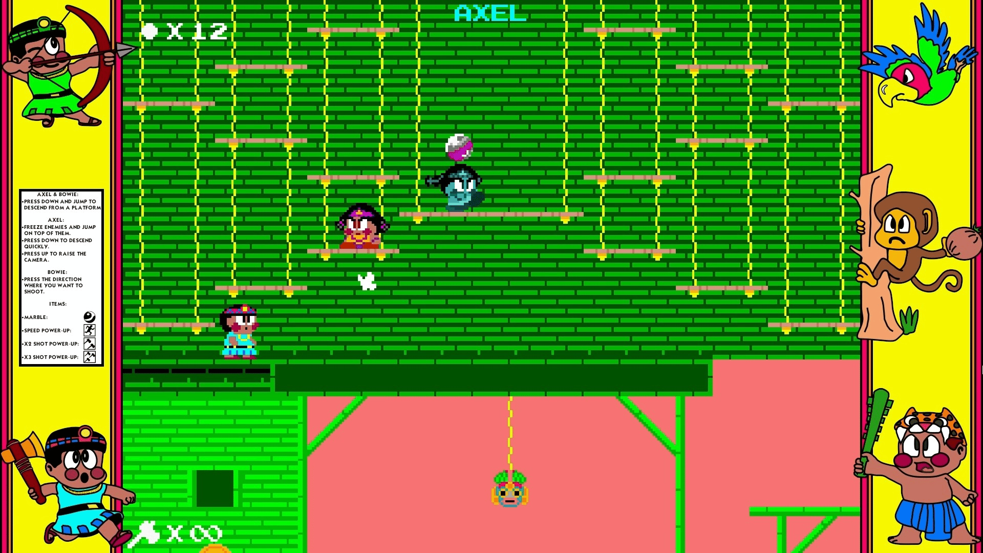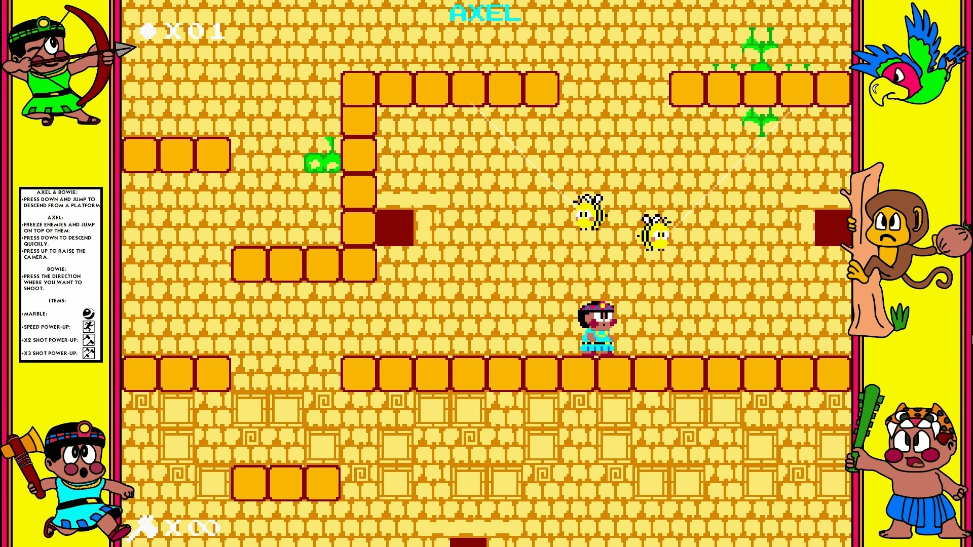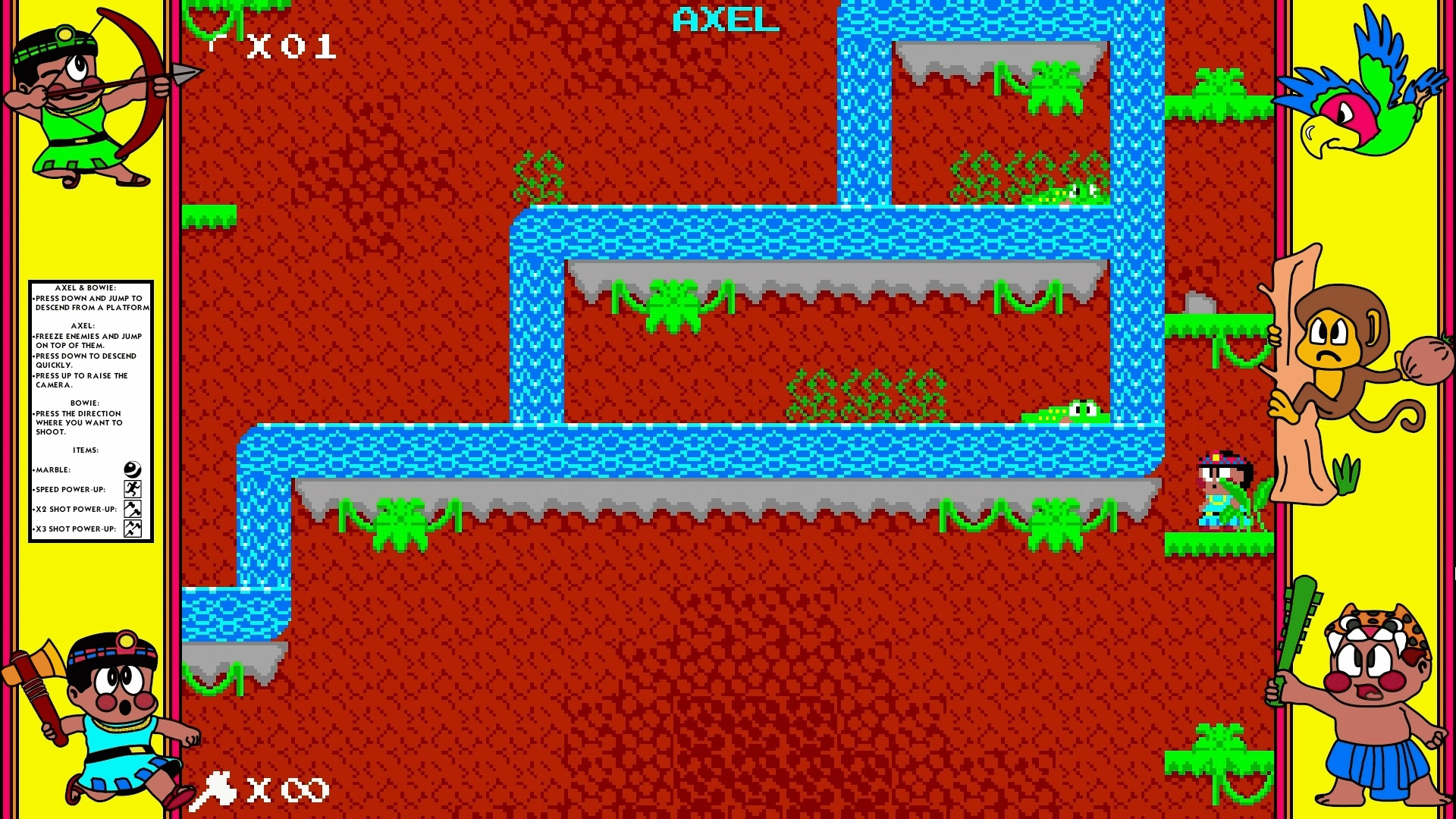 Axe & Bow Land is a retro platformer and puzzle game where brothers Axel and Bowie battle an ancient darkness in Aztec lands. With their magical weapons and unique abilities, they must overcome challenges in pixel art worlds and restore peace to their home.