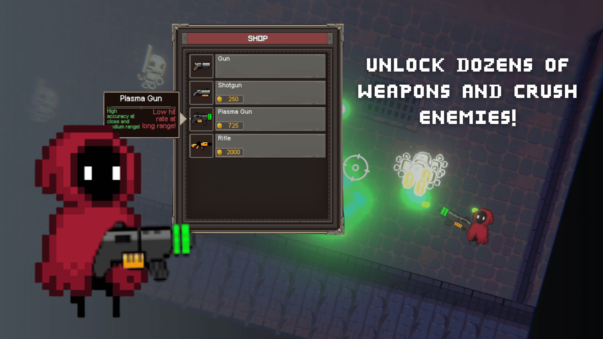 Survive against hordes of ninjas, upgrade your character with coins dropped from enemies, get unique skills with cards from chests, and face powerful bosses in this fast-paced, top-down shooter with rogue-lite mechanics.