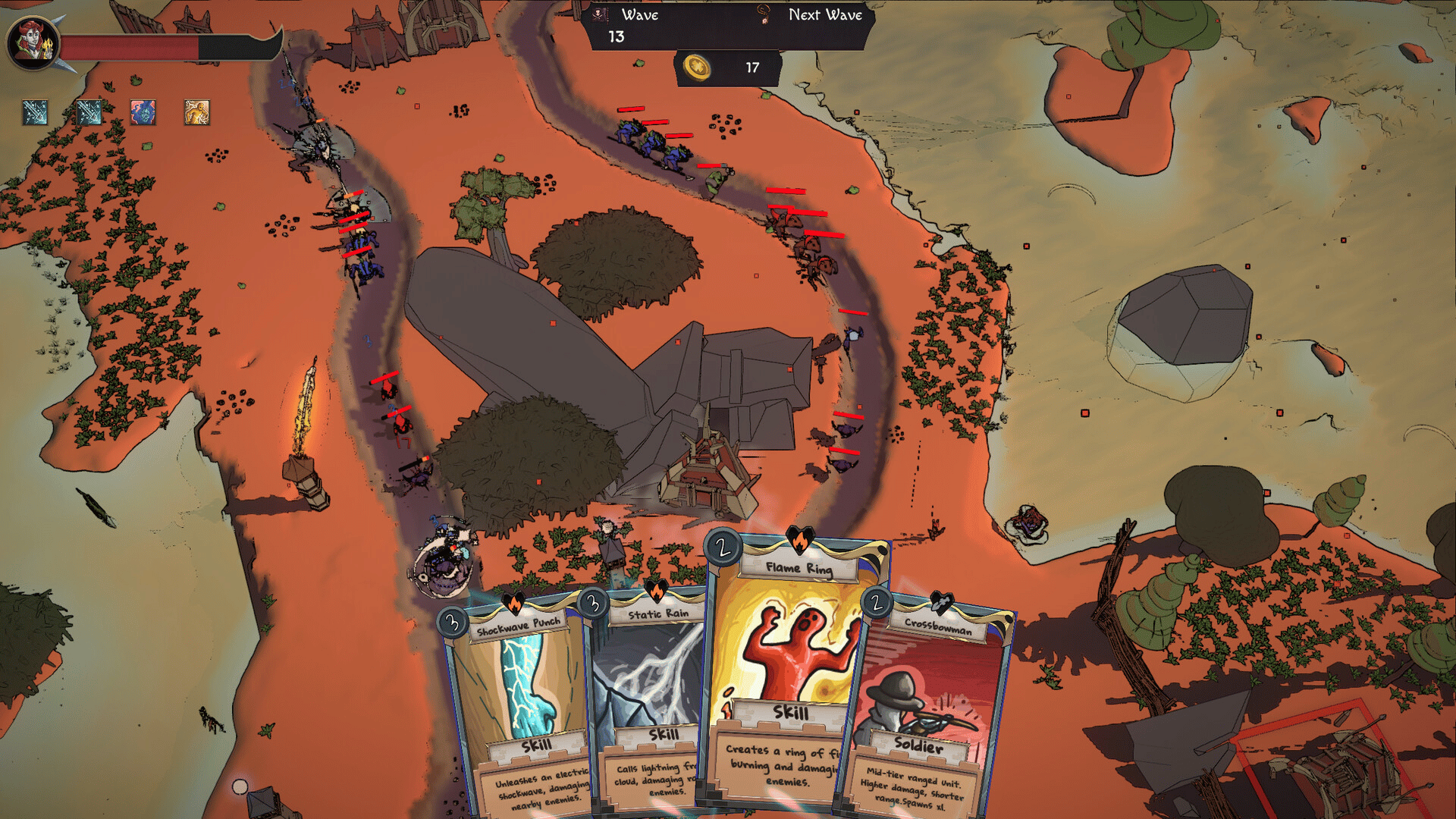 Roguelike deck-building strategy game. Combine decks compatible with your chosen playstyle, deliver satisfying damage, and cast powerful spells to defend your territory in this card-themed strategy game.
