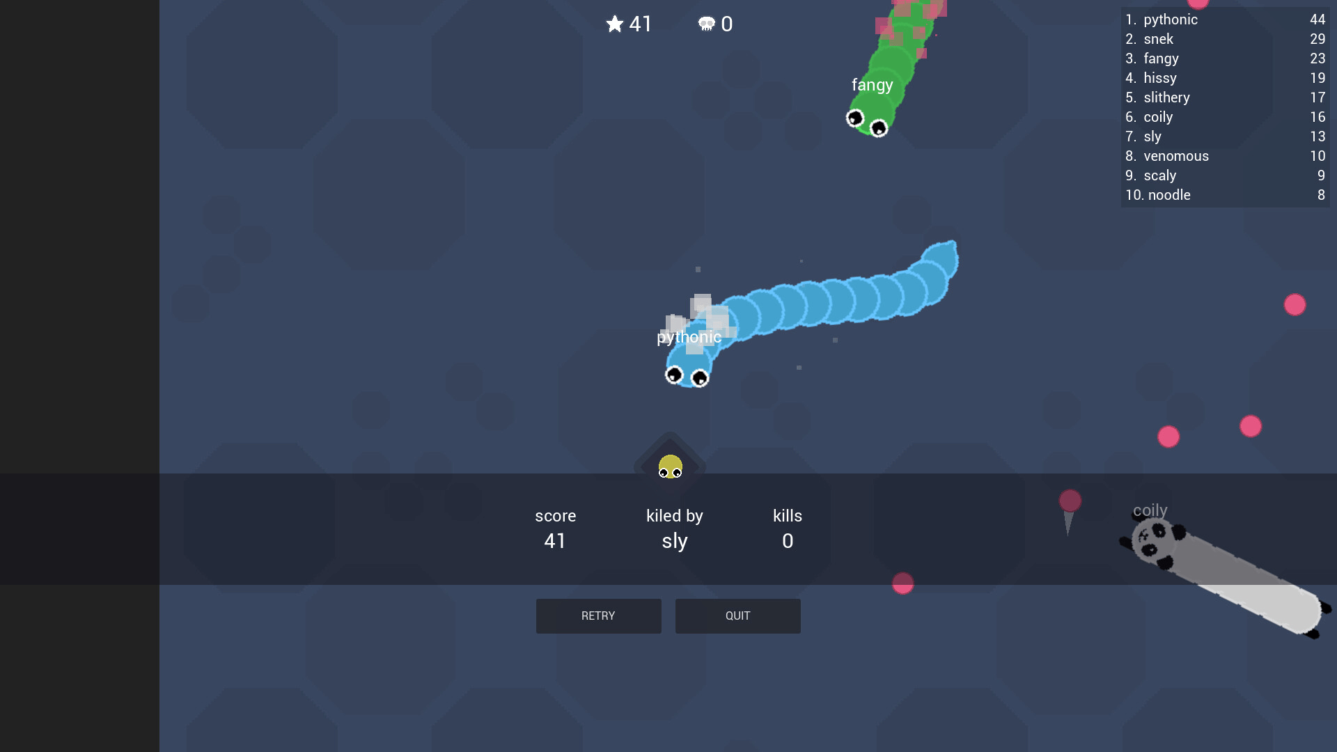 Dive into fast-paced 2D snake battles! Boost through chaos, outsmart rivals, and grow to dominate the arena. Instant respawns keep the action non-stop. Easy to learn, hard to master. Do you have what it takes to survive?