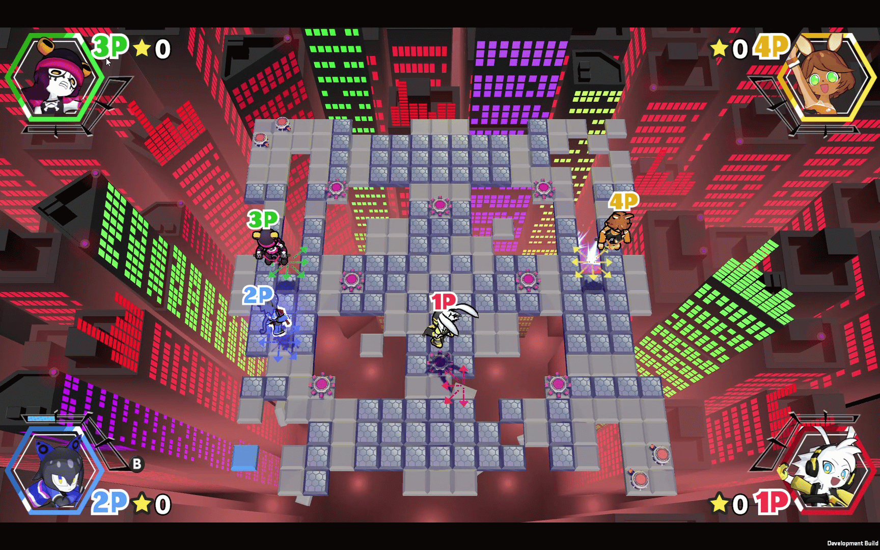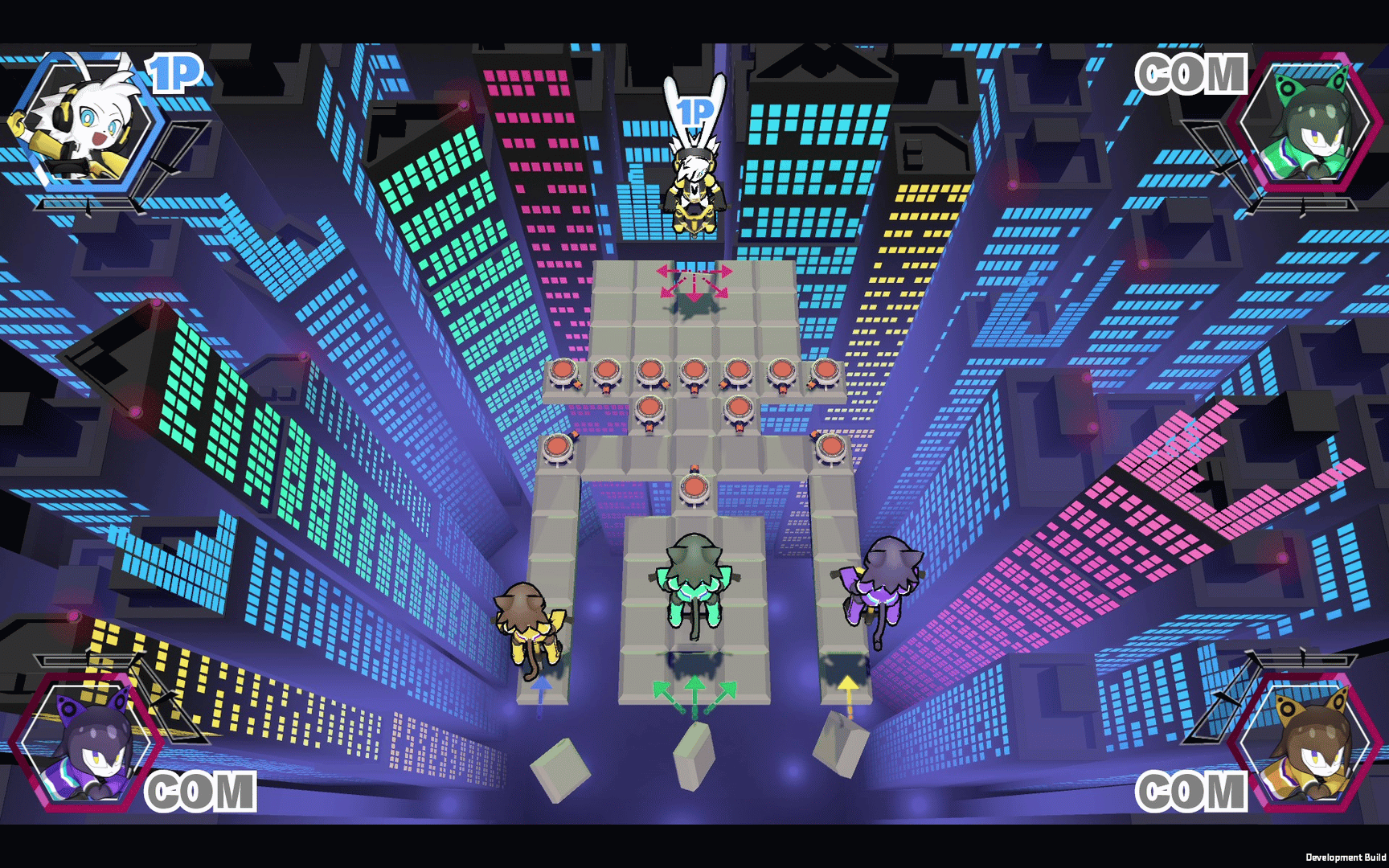 POGO Stadium is a rhythm-based territory control battle game inspired by Go. Players bounce across futuristic arenas using pogo sticks, strategically placing blocks to capture territory in real time. The game features solo challenges and local multiplayer for up to four players, with customizable characters, gear, and dynamic music-synced visuals.