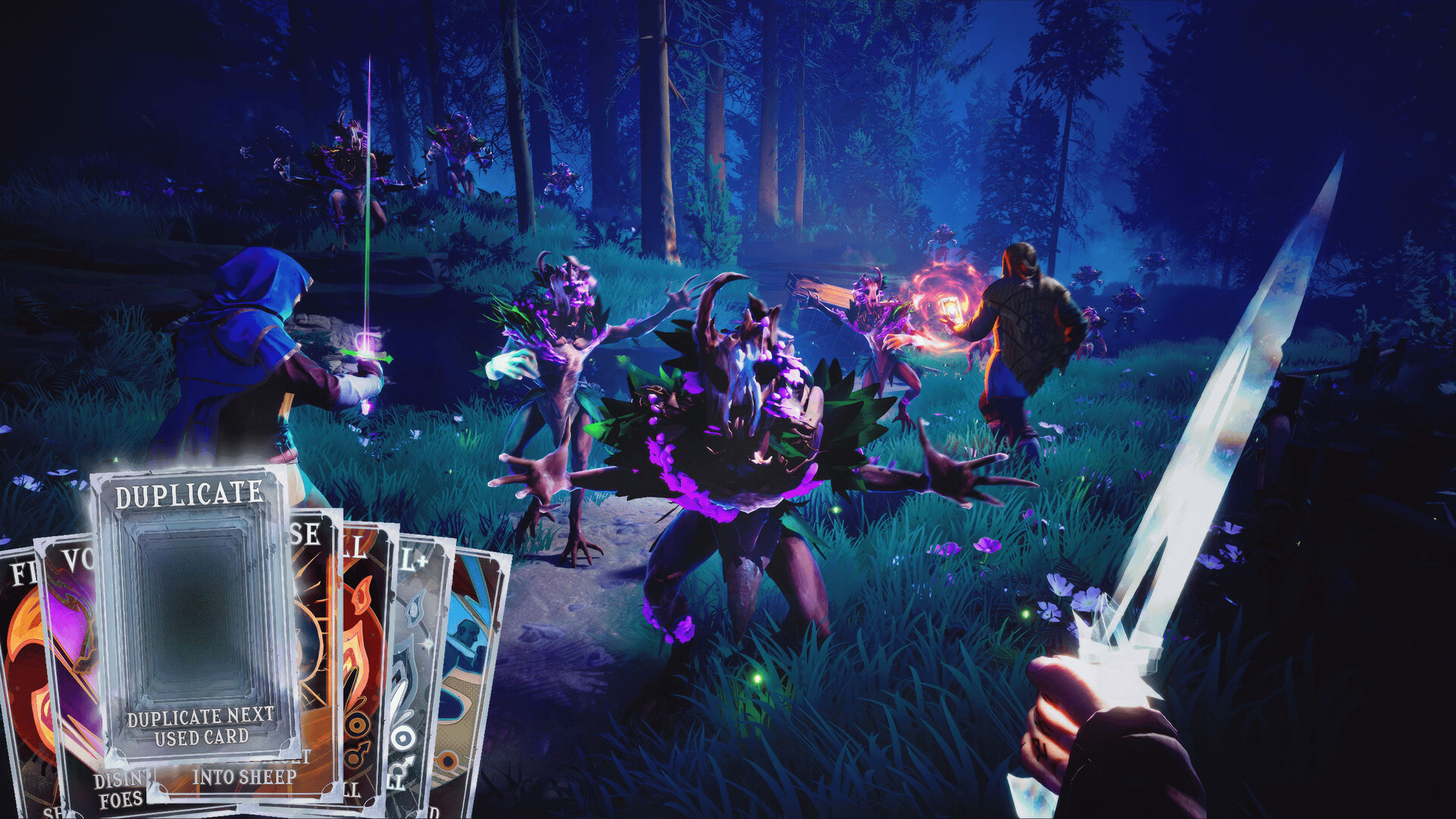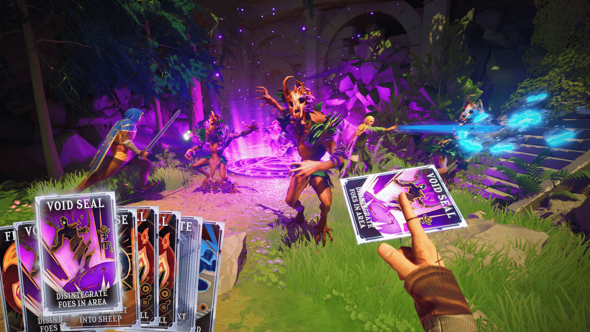 Deckmancers, an action melee roguelite, blends deckbuilding with spell-slinging & sword-swinging chaos. Build arcane decks, play cards to cast powerful spells & cut through hordes of fantastic beasts. Journey through shattered realms, solo or in co-op, to conquer the arcane tournament.