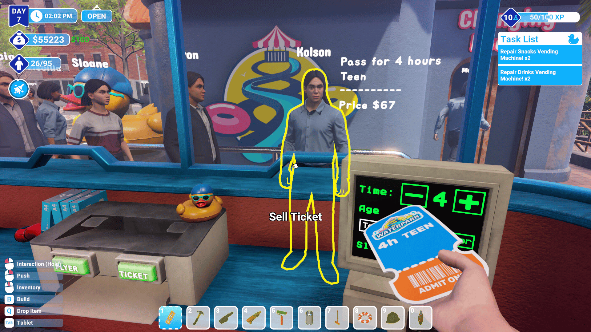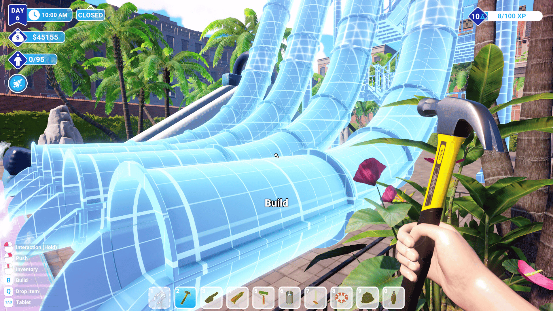 Build and run your own waterpark. Design slides, send guests flying with ragdoll physics, manage staff, and fully customize your park. Turn total madness into a five-star empire in this first-person management simulator!