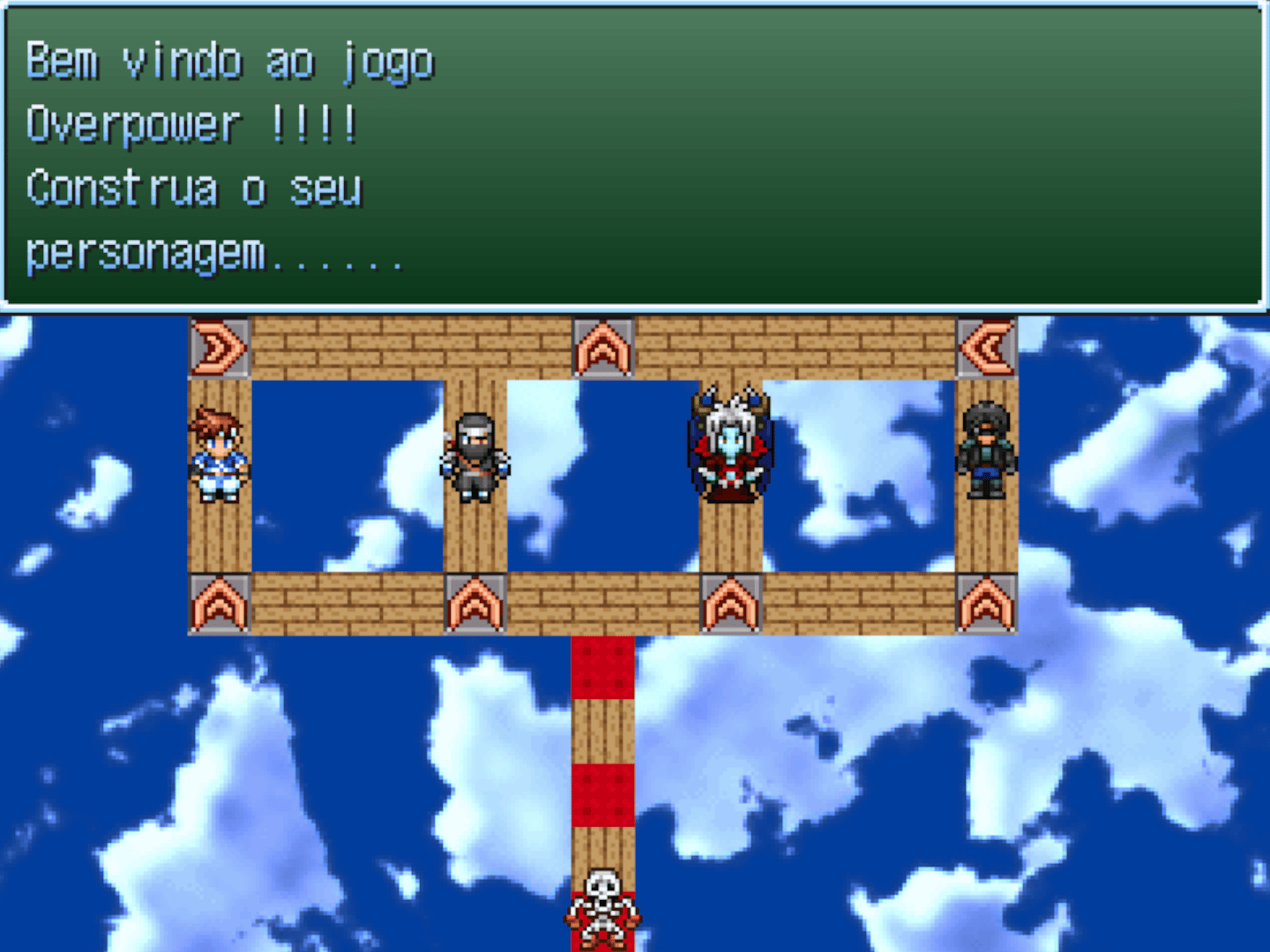 Overpower is a Brazilian game developed on RPG Maker 2000, originally released in 2002 and developed by E.F.N. Most of its assets come from the Runtime Package (RTP), and its sense of humour is typical of the early 2000s Brazilian internet. Despite that, the game had high narrative and gameplay ambitions. You start the game by choosing one out of four characters. Each character has its own narrative line, and their stories eventually cross each other. The game also has an alignment system that, although simple, can have surprising consequences. For example, depending on the circumstances of your death, instead of a game over your party can be sent to either heaven or hell, where there's an opportunity to be brought back to life, for a price. The game also features an extensive magic system, with 11 different Schools of Magic. According to the "LEIA-ME!!!" file, Overpower: A Saga de Bulgar was supposed to be the first of at least three chapters. The other two were tentatively titled "A Saga de Dark Elf" and "A Vingança do Rei Dragão". There were also plans to let players transfer their save files between chapters. Despite its ambitions, Overpower has yet to receive a sequel.