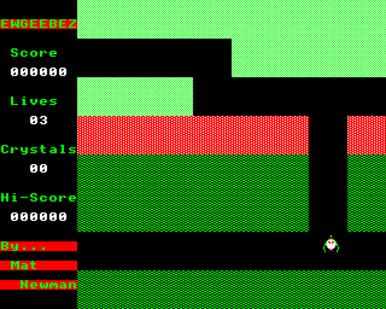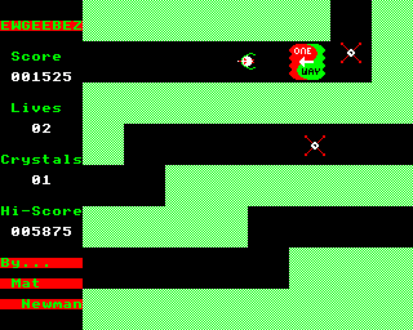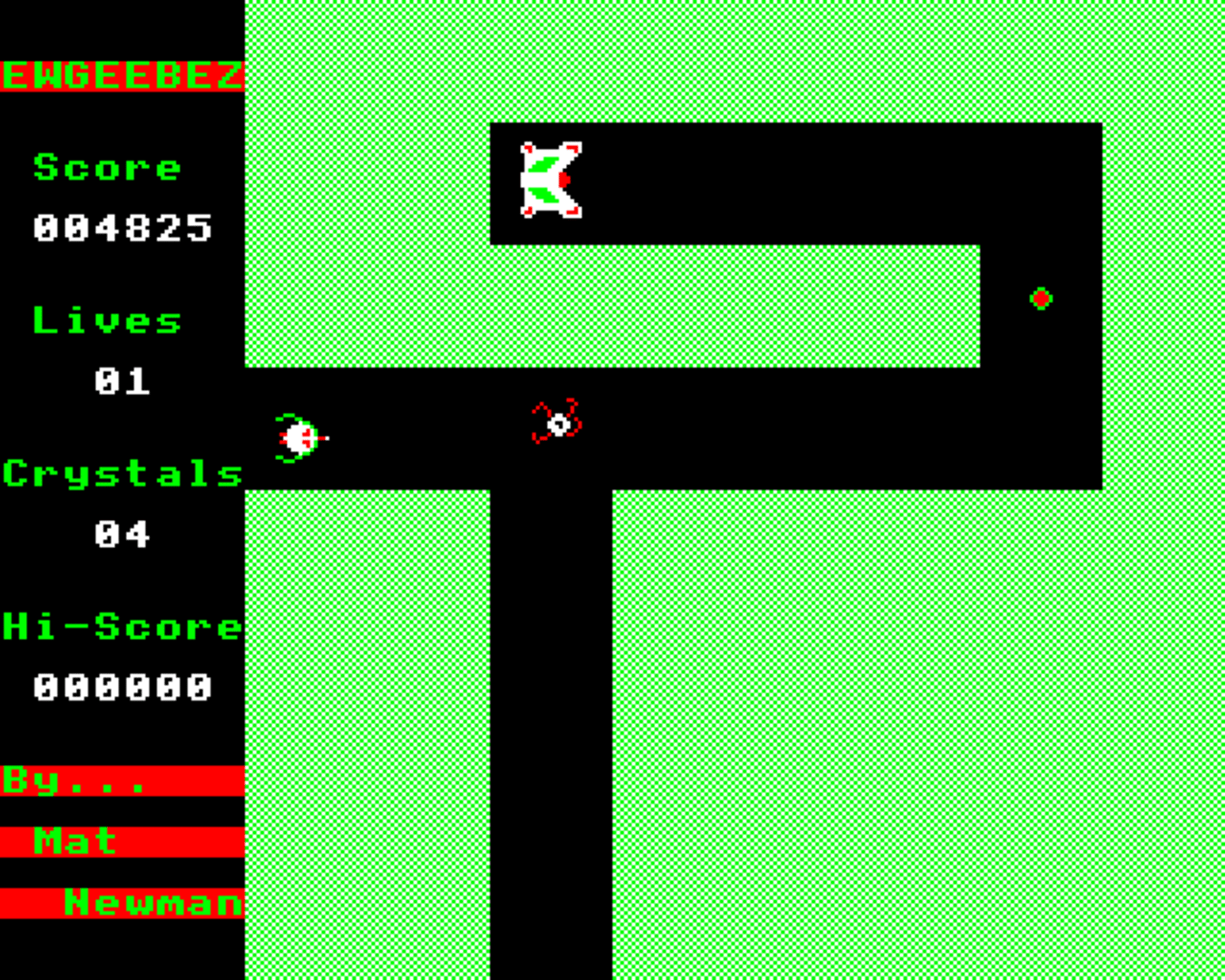 The player controls a spaceship that travels in the cardinal directions. The ship can fire directly forwards, and must explore a large maze in search of the 12 crystals needed to escape.