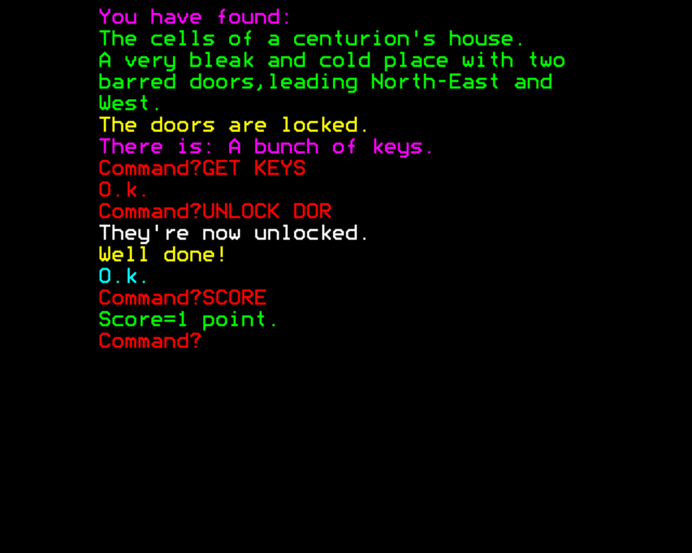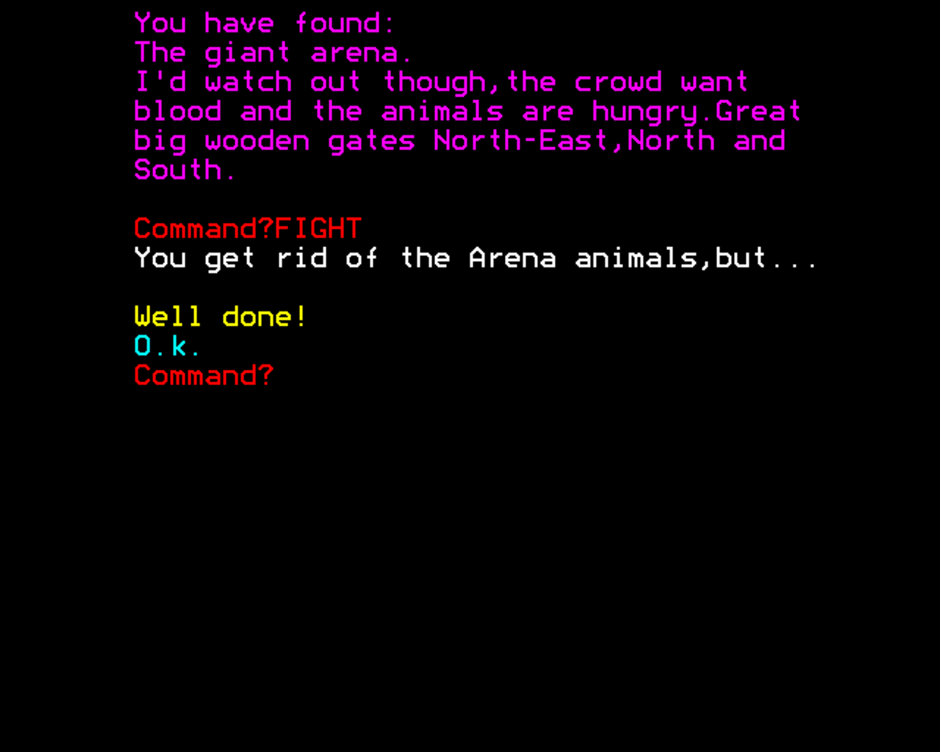 Legion is a text-adventure. You are a gladiator of Caesar and you want to become a warrior of Caesar, so you have to solve various riddles and overcome obstacles.