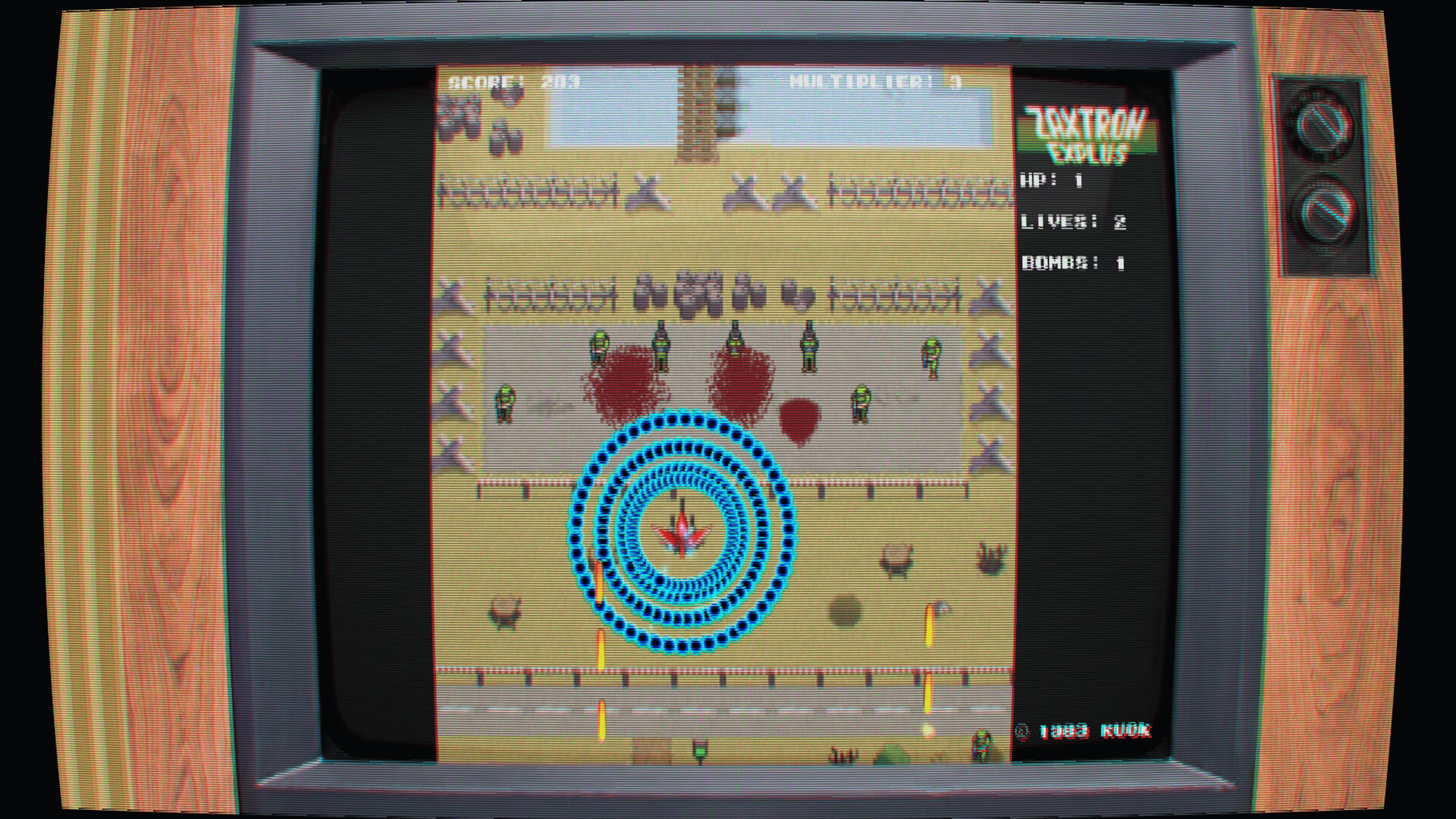 ZAXTRON EXPLUS is a punishing, fast-paced 1980s-style SHMUP with 5 brutal levels, 28 weapons, and hidden secrets. No mercy: reflexes and precision required—are you tough enough