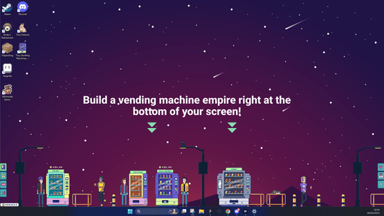 Tiny Vending Machines is an idle pixel art game that runs at the bottom of your screen. Buy and upgrade vending machines, stock them with drinks, snacks, and more, and keep customers happy. Automate your machines at higher levels and grow your vending empire while you work or study!