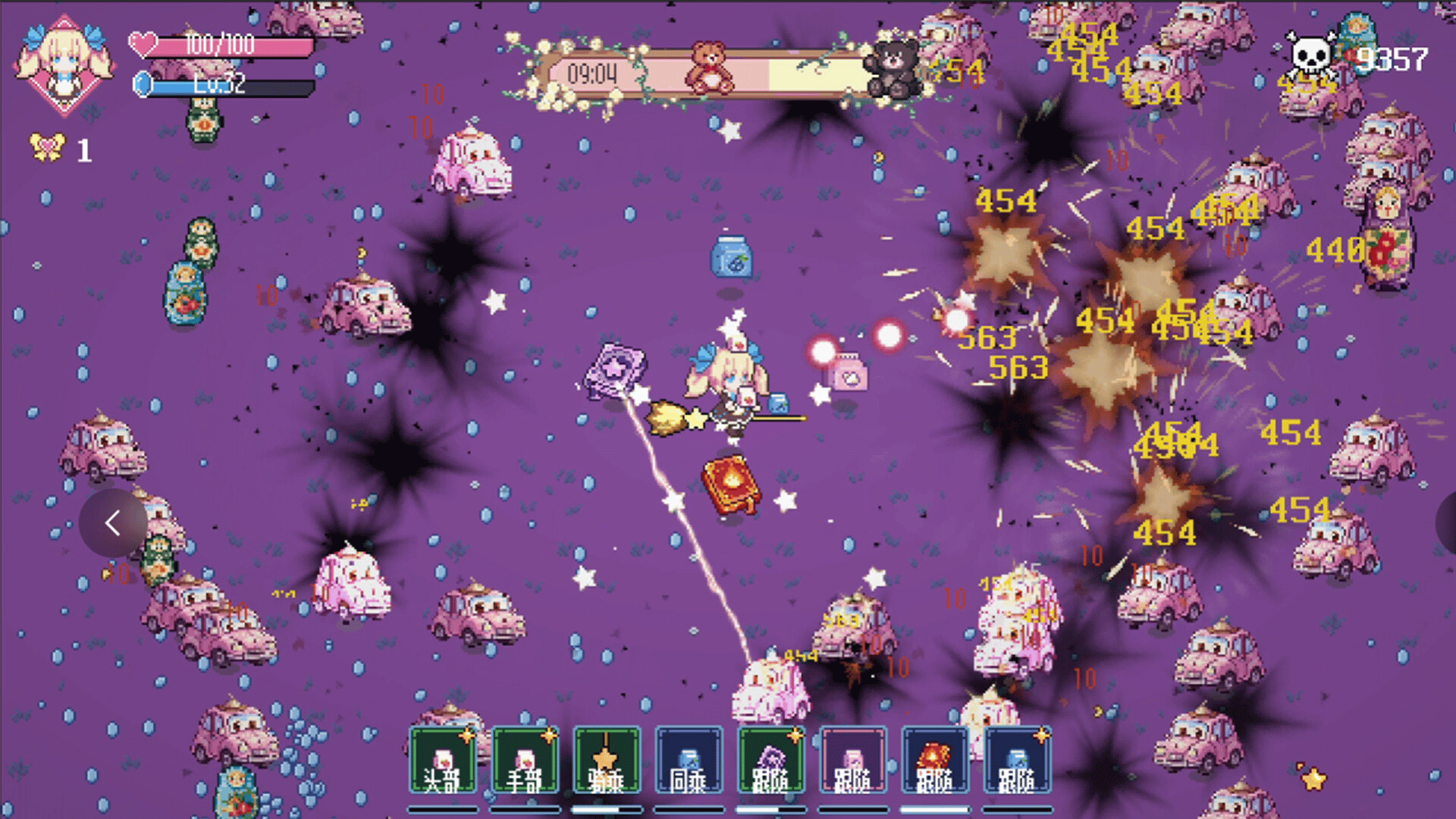 "Little Witch Survivors" is a magic pigeon barrage shooting game. You will play as a little witch, summoning and commanding eight unique magic guardians to fight side by side! Each guardian has dual skills, and you can switch strategies freely in the equipment slots - weave your own magic miracle!