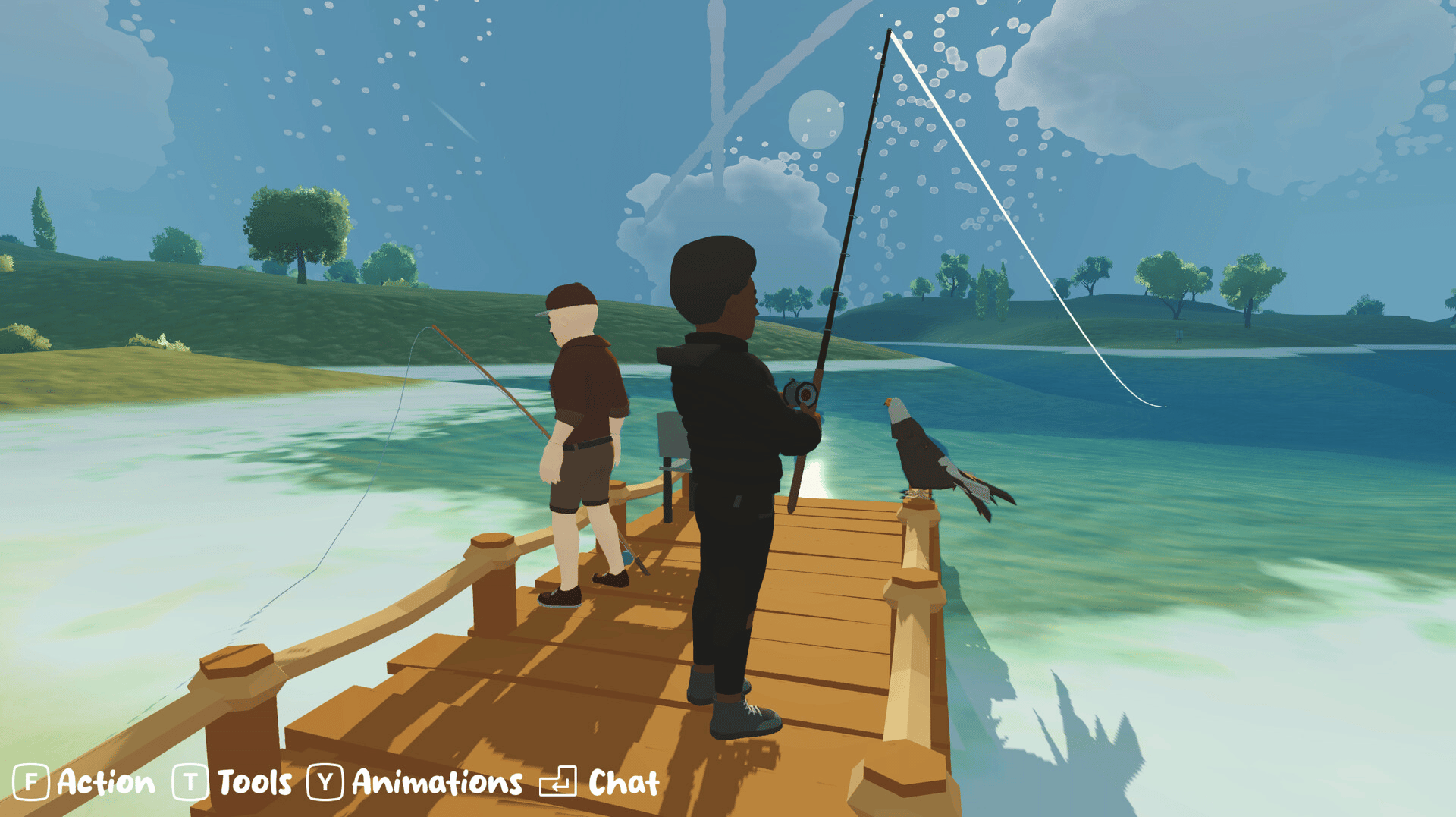 Fireside Friends is a cozy multiplayer sandbox where players explore a vast world, catch fish, play instruments, and uncover secrets with friends or on their own. Complete a rich compendium filled with animals, vehicles, fish, and locations to discover. It's a kid's game for adults!