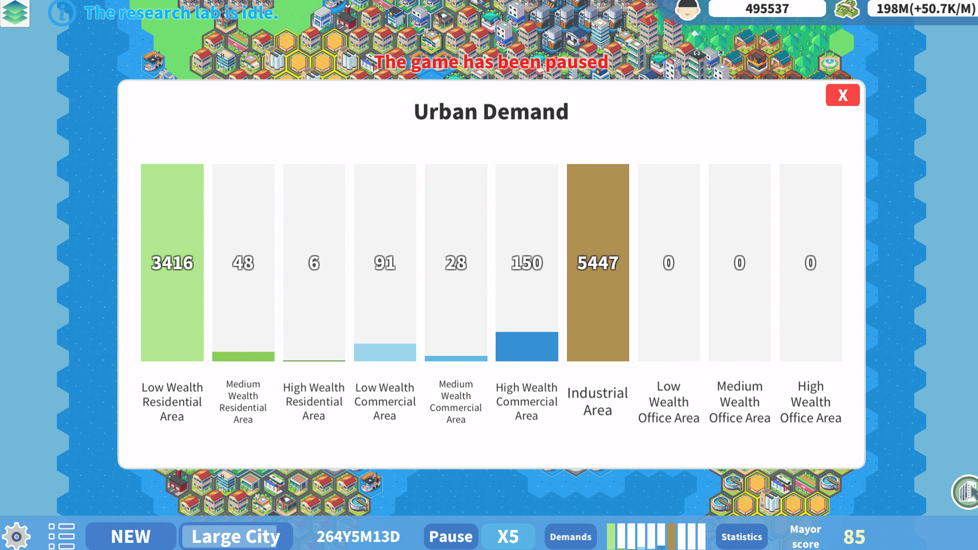 Starting from a small village and growing into a megacity with a million population, this is a city-simulation game that integrates systems such as demand, plot price, wealth, and special zones. It has a high degree of manageability and is suitable for urban-construction and management enthusiasts.