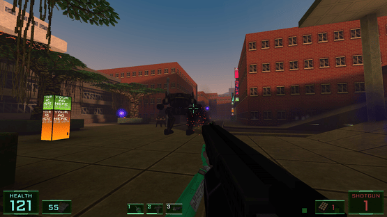 A retrowave/mecha-inspired sci-fi first-person shooter featuring fast-paced combat in old-school style open-plan levels packed with pickups, keys, and secrets.
