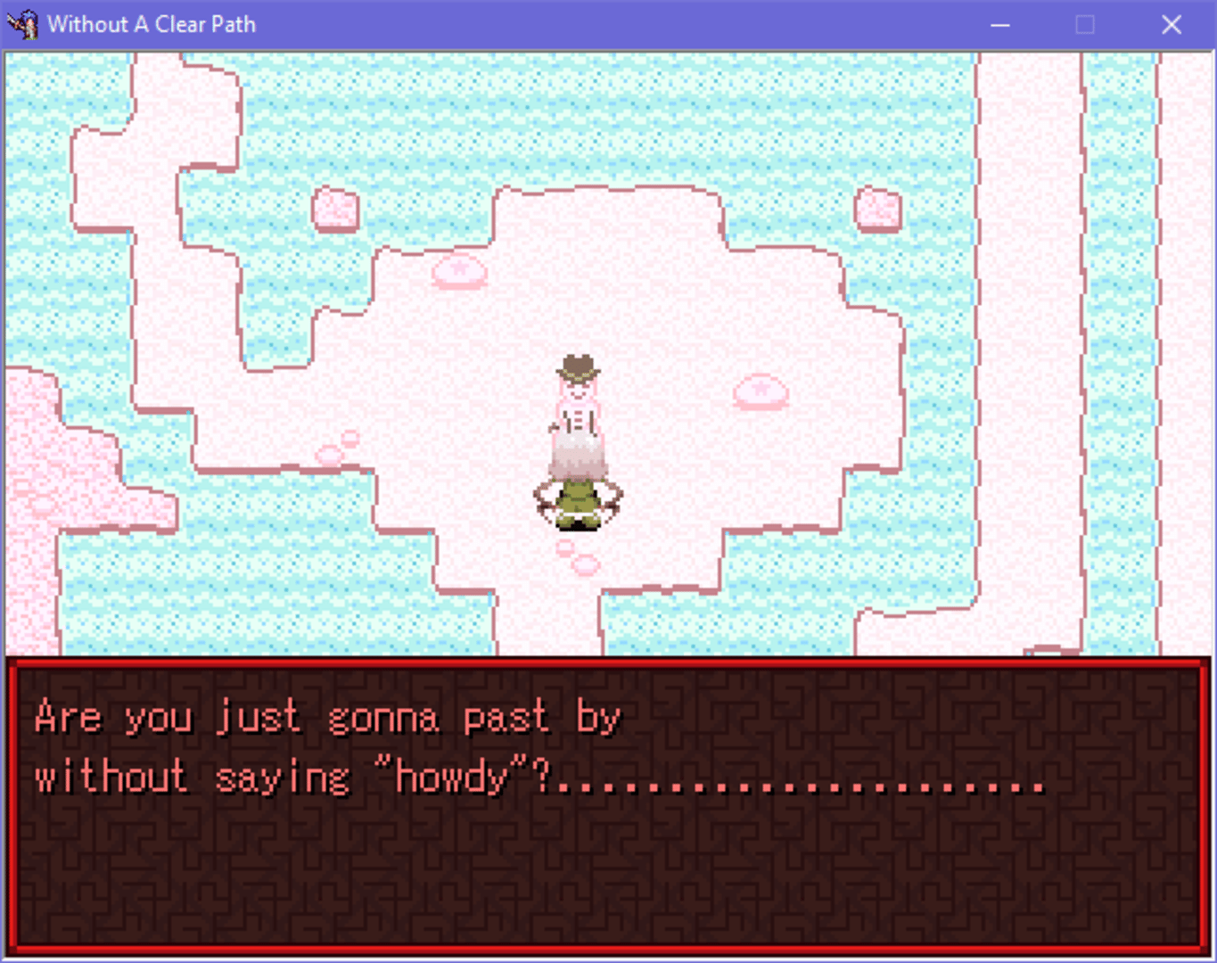 Without a Clear Path is a collaborative English Yume Nikki parody fangame originally started and managed by Doc Saturn in 2018 and then later managed by Calci Soya and assisted by JPiggs. The protagonist was designed by Saibibi. The game's concept is that it is a fangame where every single world is a maze. It features contributions from many different developers, and a full list of credits can be found in the game's folder.