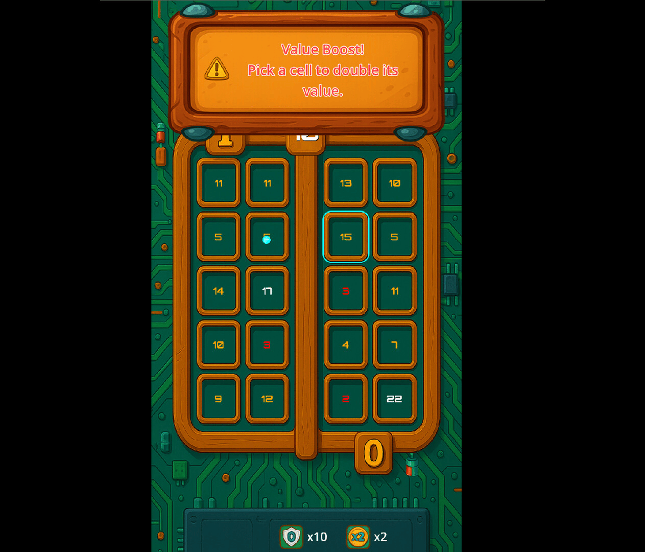 A minimalist yet strategic puzzle-arcade game where every bounce counts. Redistribute cell values, unlock powerful abilities, and survive as long as you can — one wrong move, and it's game over.