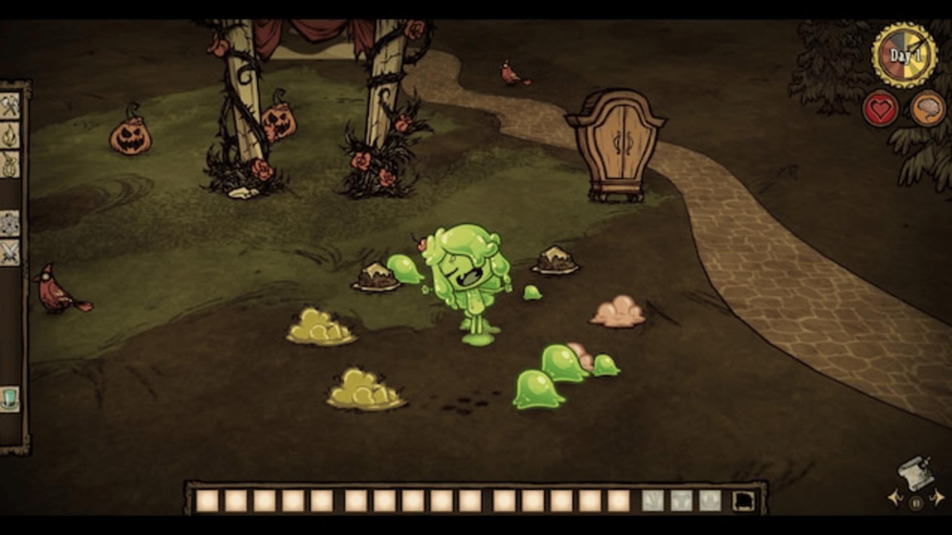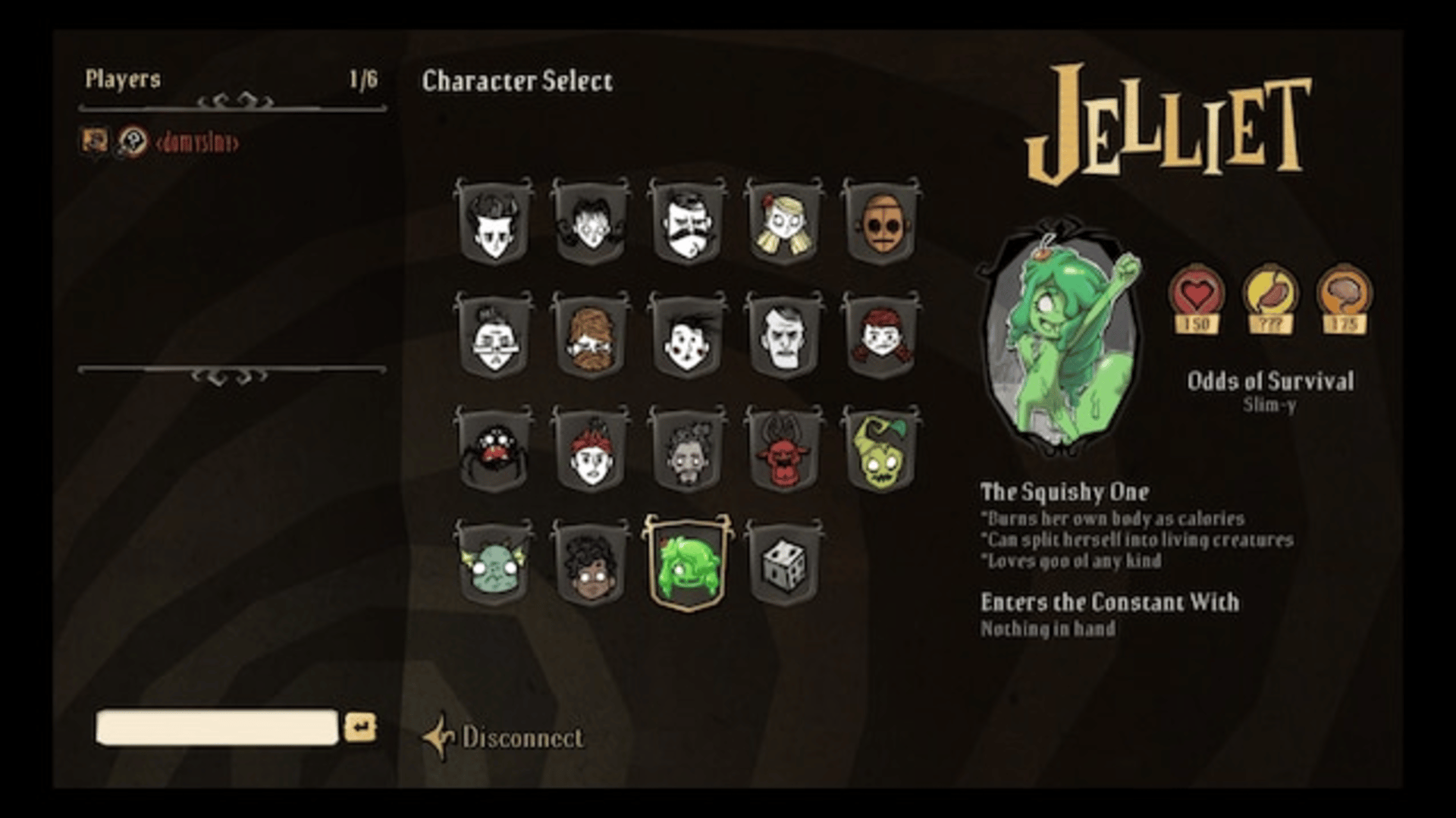 The Jelliet mod, The Slime Girl introduces an original character for Don't Starve Together with a set of simple but eye-catching advantages like the generation of small slimes when Jelliet suffers damage. These function as items on the ground that he can pick up to recover. Each slime has 2-3 health points, and they usually disappear after a few seconds.