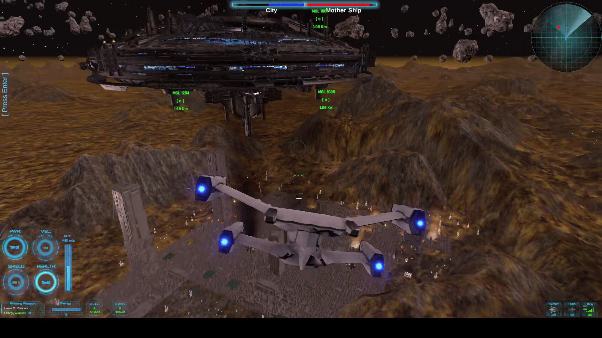 It is a multiplayer space battle game, the human team vs. the alien team, the human team tries to avoid the Exterminium of the planets and cities by facing the aliens.