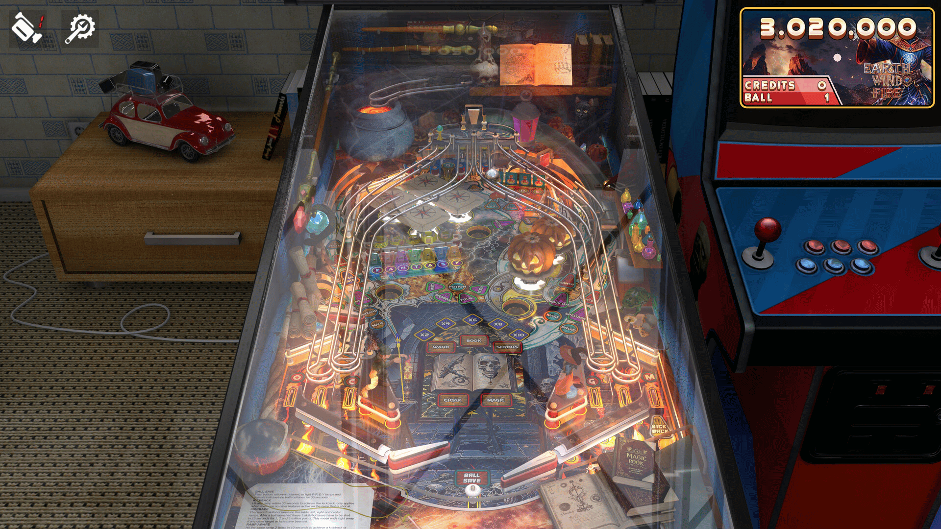 Earth Wind Fire Deluxe table is the original Earth Wind Fire table reimagined with such modern pinball features like LCD display, prism lamps, game and multiball modes, and the secondary playfield.