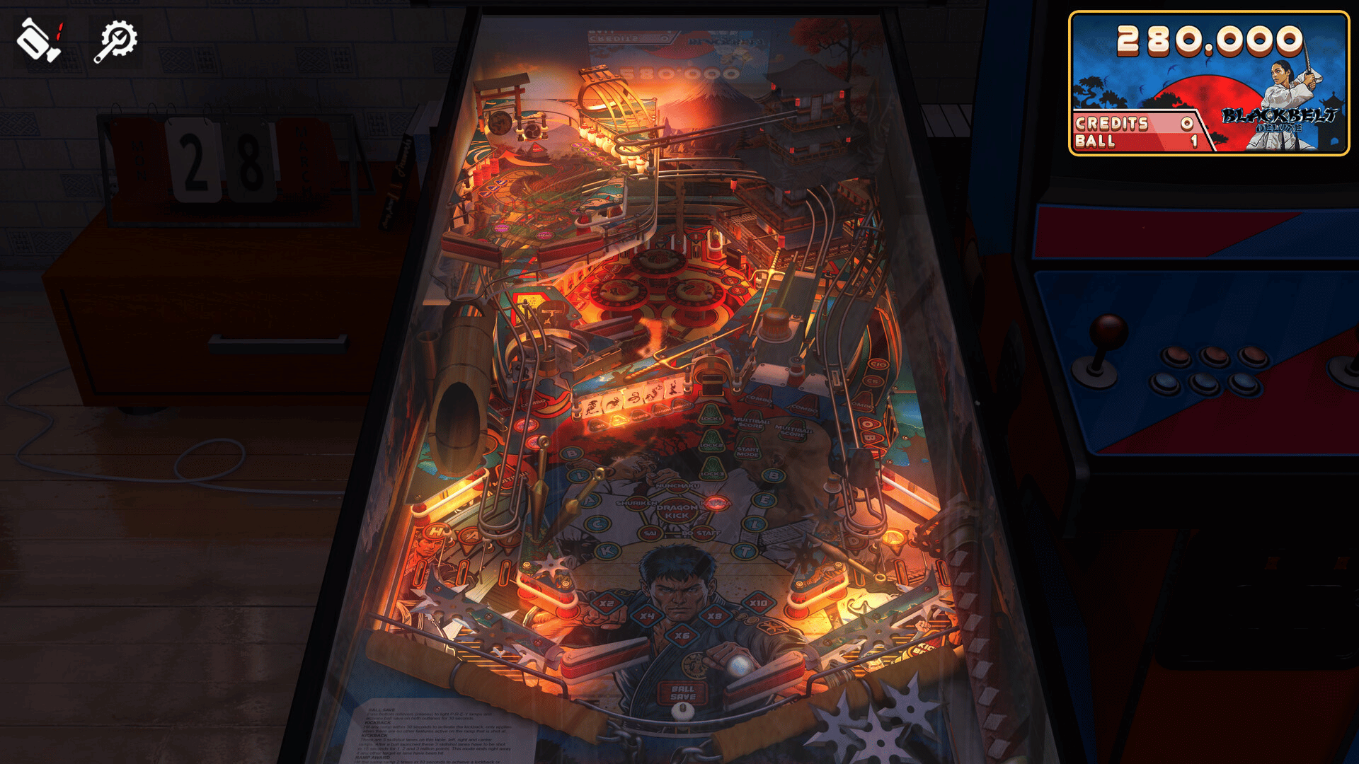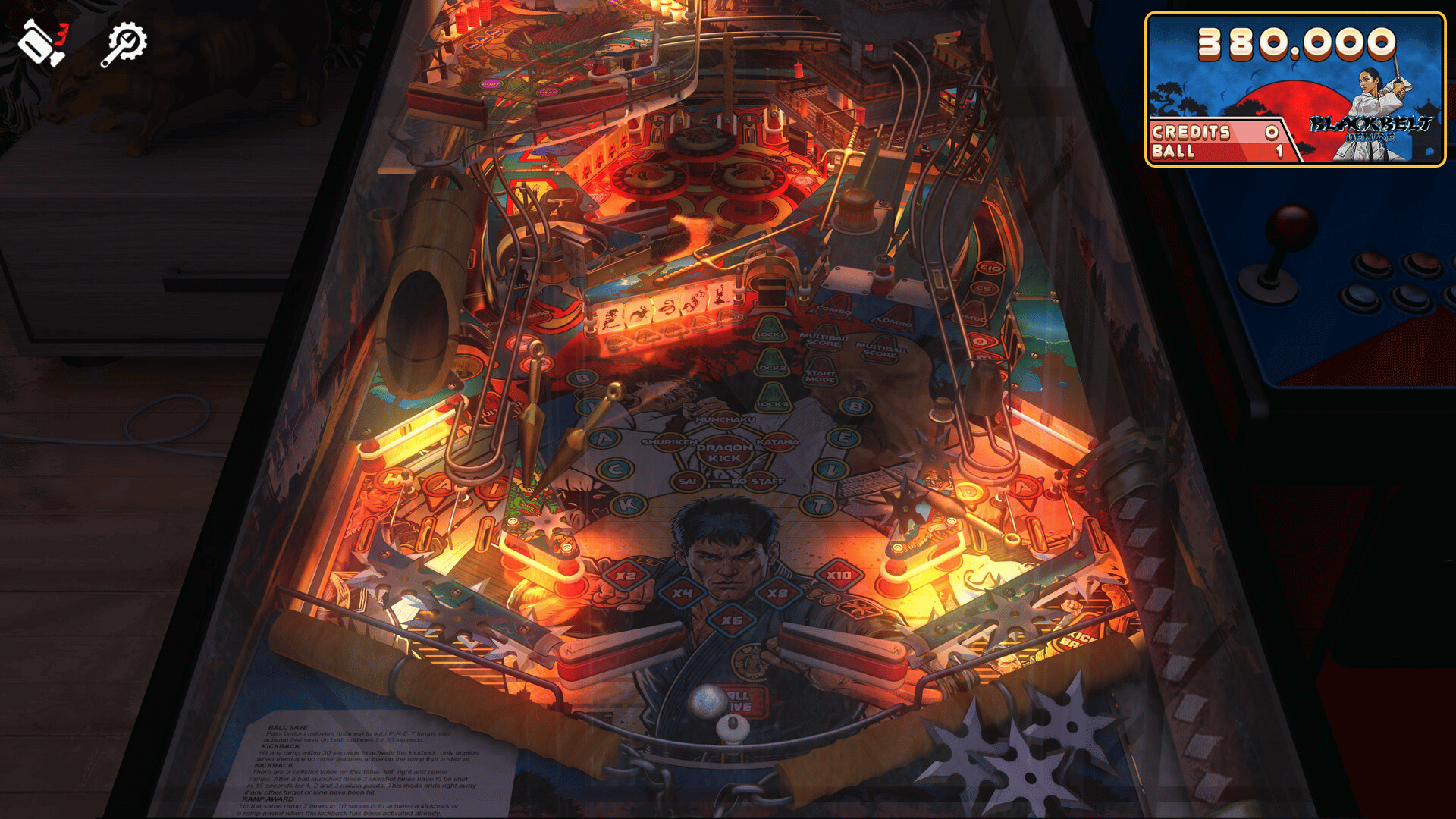 Blackbelt Deluxe table is the original Blackbelt table reimagined with such modern pinball features like LCD display, prism lamps, game and multiball modes, or the secondary playfield.