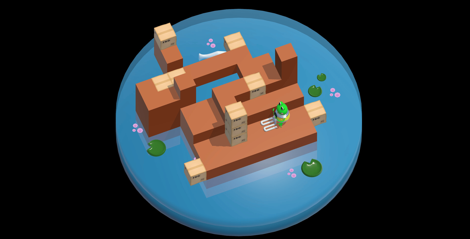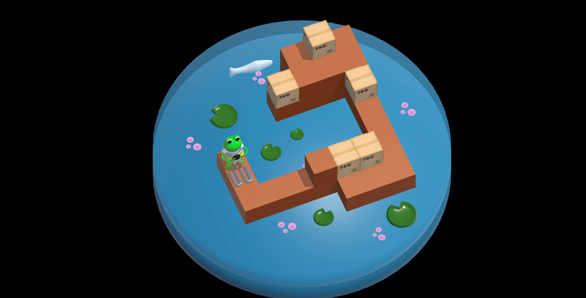 Fork Frog is a Puzzle Game about moving boxes with a Fork Lift, as a Frog.