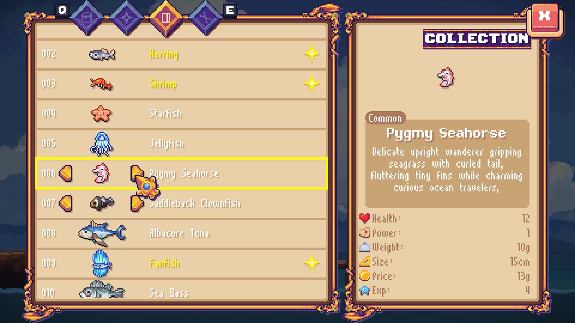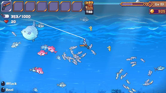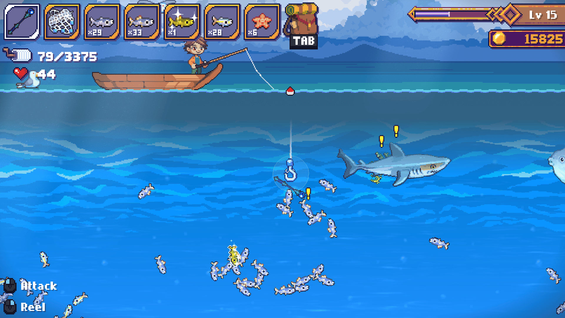 Idle Clicker fishing game where you attack with different weapons to catch fishes, sell them to upgrade your equipment, unlock new skills. Explore diverse fishing spots, challenge mighty boss fishes, and strive to complete your massive fish collection.