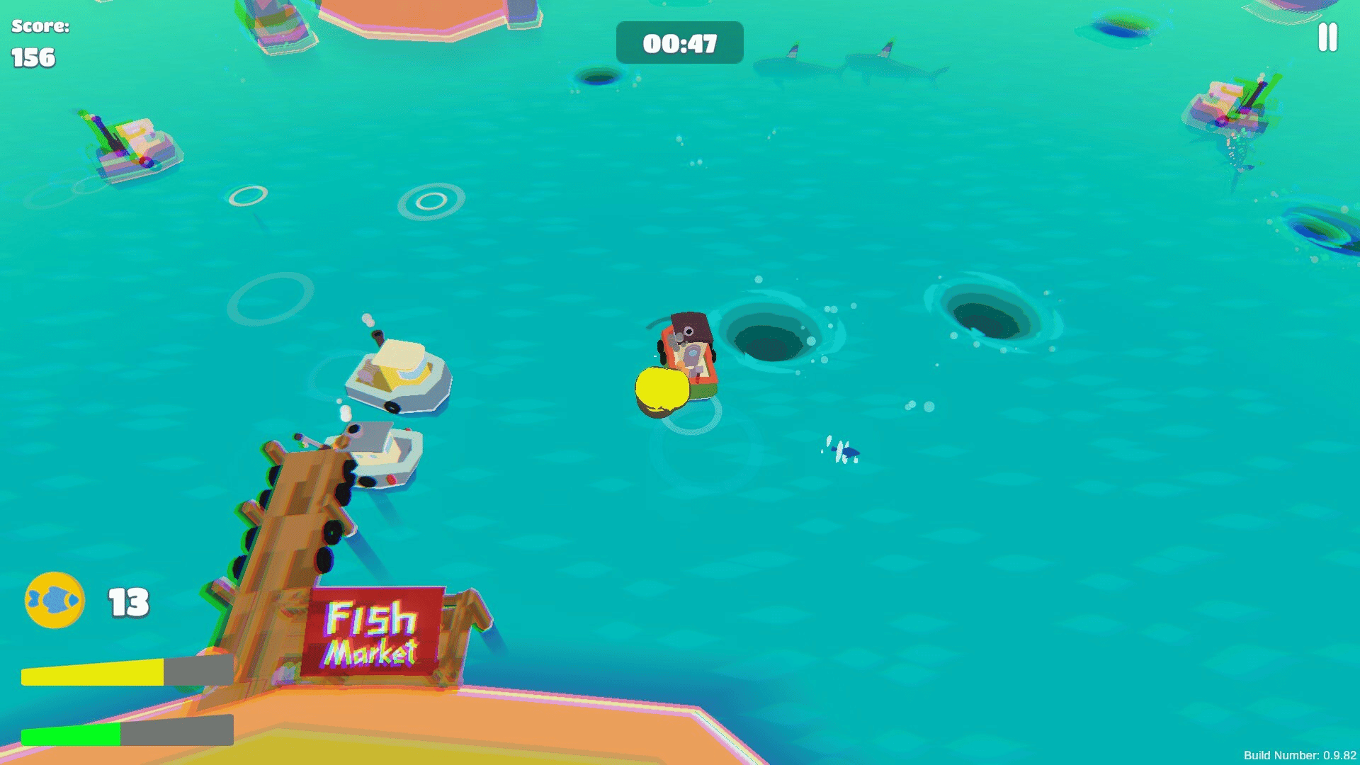 A small casual fishing game where every round is bite-sized, and the competition is fierce for every fish. On the dock, you can use the fish you've collected to buy upgrades and repair your damaged vessel. And in desperate times, you can even fire your fish at your rivals. Good luck !