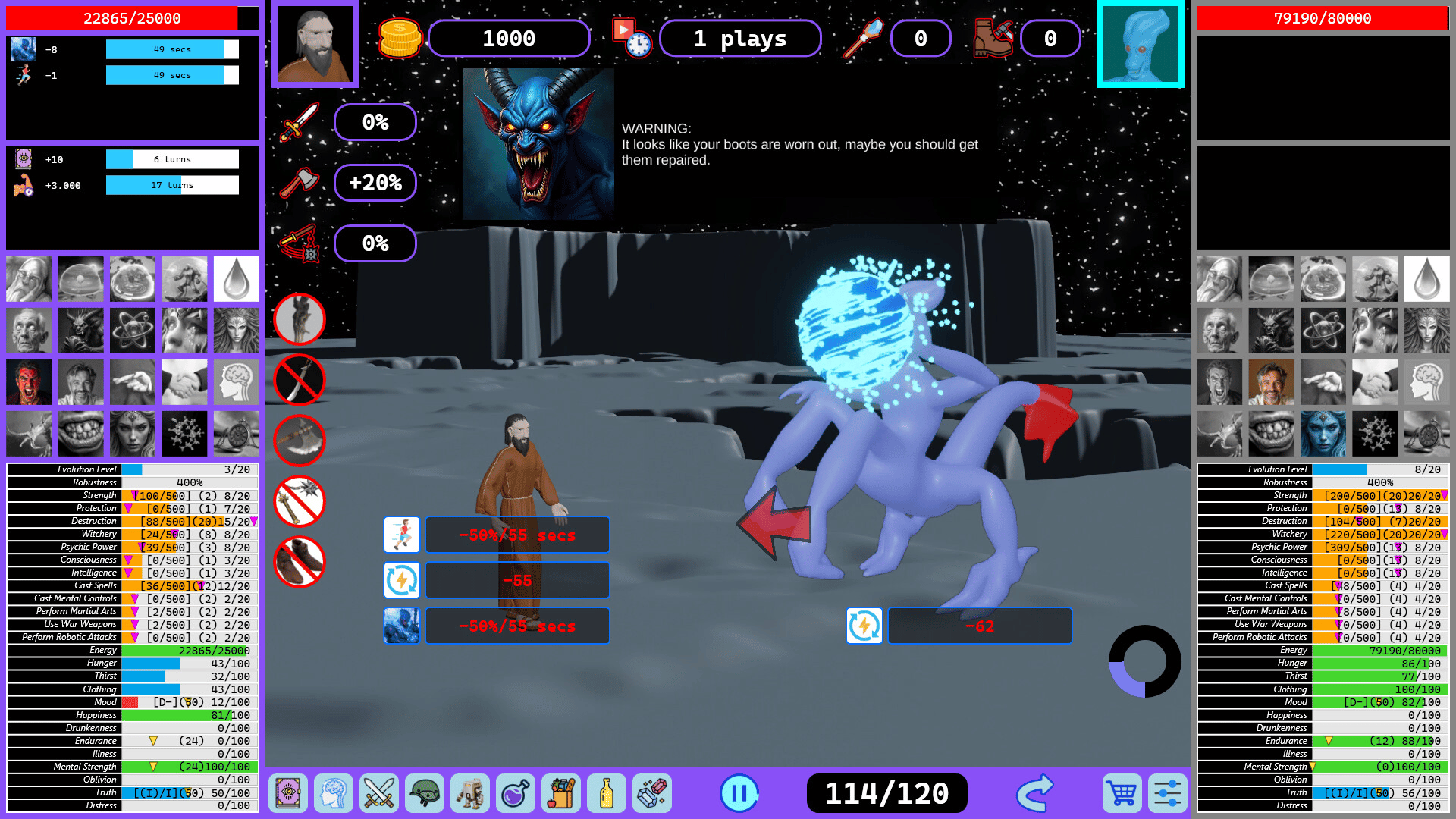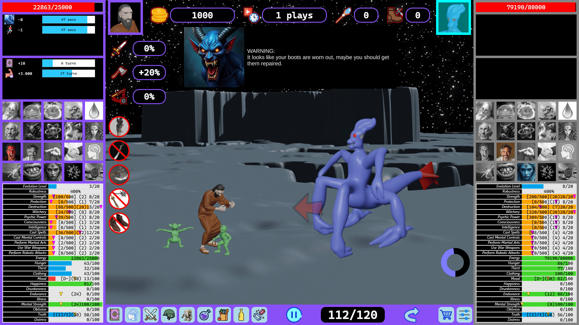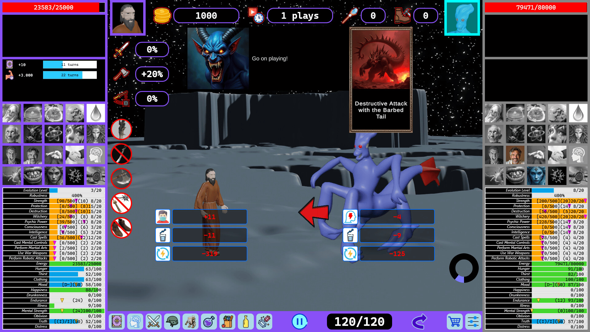 Turn-based combat game where you will fight against the demons of Bebshoru Lodbuka's hell until you reach Trekim Gogzokk's lair, and thus banish the darkness from the land of Abunouzeppan. You can make combat strategies by throwing cards that are sold in the Marketplace.