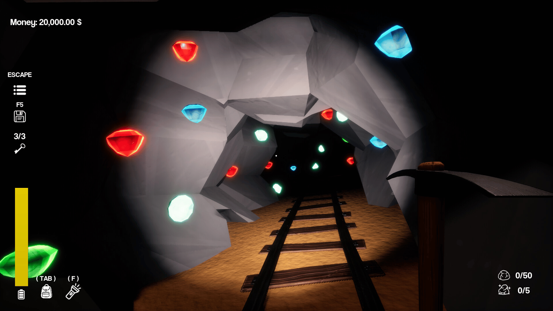 A Game About Mining Rocks is a single-player survival game where you mine rocks, gather minerals, sell them, and upgrade your gear to explore deeper. Reach the bottom to find a legendary crystal, but be careful something down there is waiting for you.