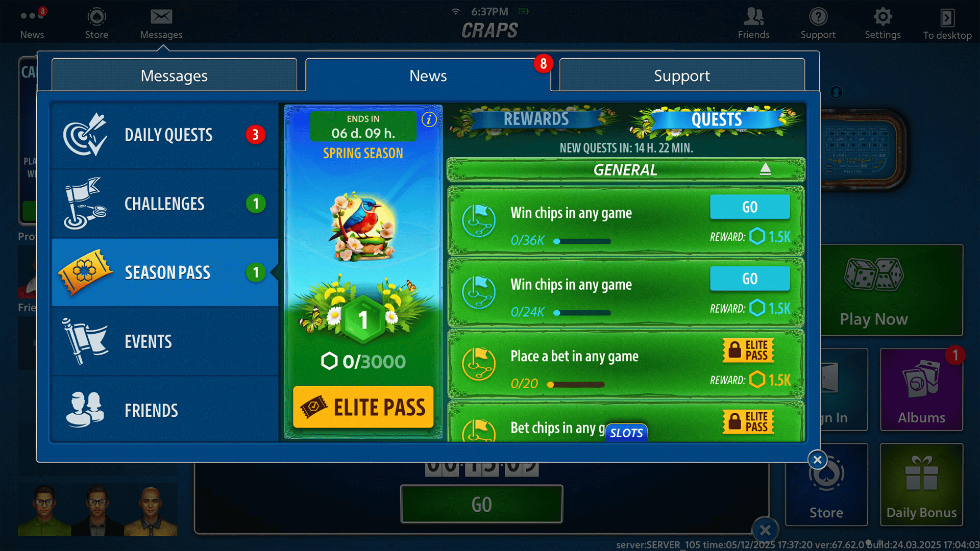 Play real casino craps in 3D and enjoy realistic physics and multiplayer mode. Feel the thrill of competition, immerse yourself in the casino atmosphere and try your luck!