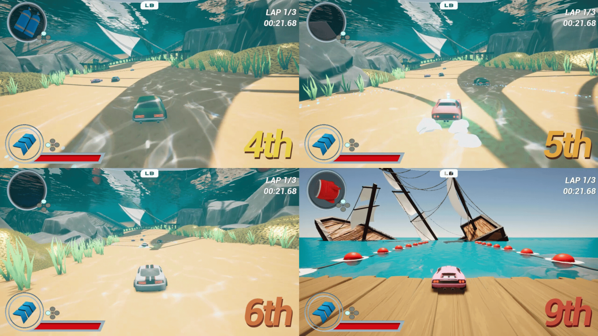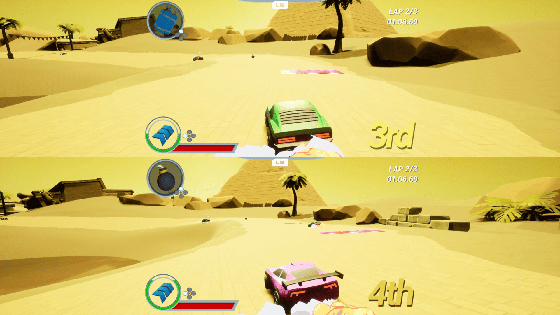 Overtake and blast away your opponents in Nitro Battle Racing! In this arcade action racer, you will compete in exhilarating races using a variety of powerups and abilities to surpass the competition. Unlock new maps through your accomplishments and become the ultimate racer.