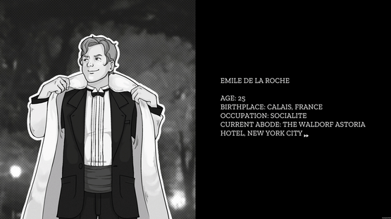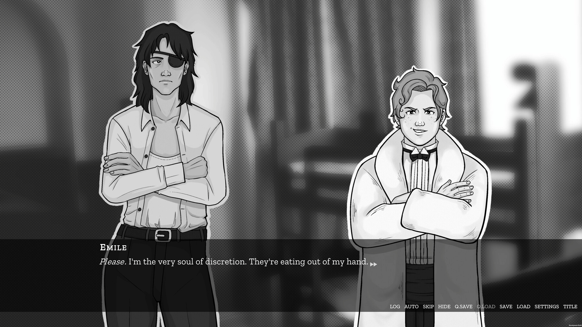 A honey-trapping, backstabbing, high-stakes story with a romantic heart, featuring problematic gays to suit a variety of bad tastes. Set in 1920s New York, this episodic visual novel follows an audacious conman juggling friends, enemies, and the most outrageous scam he’s ever tried to pull.