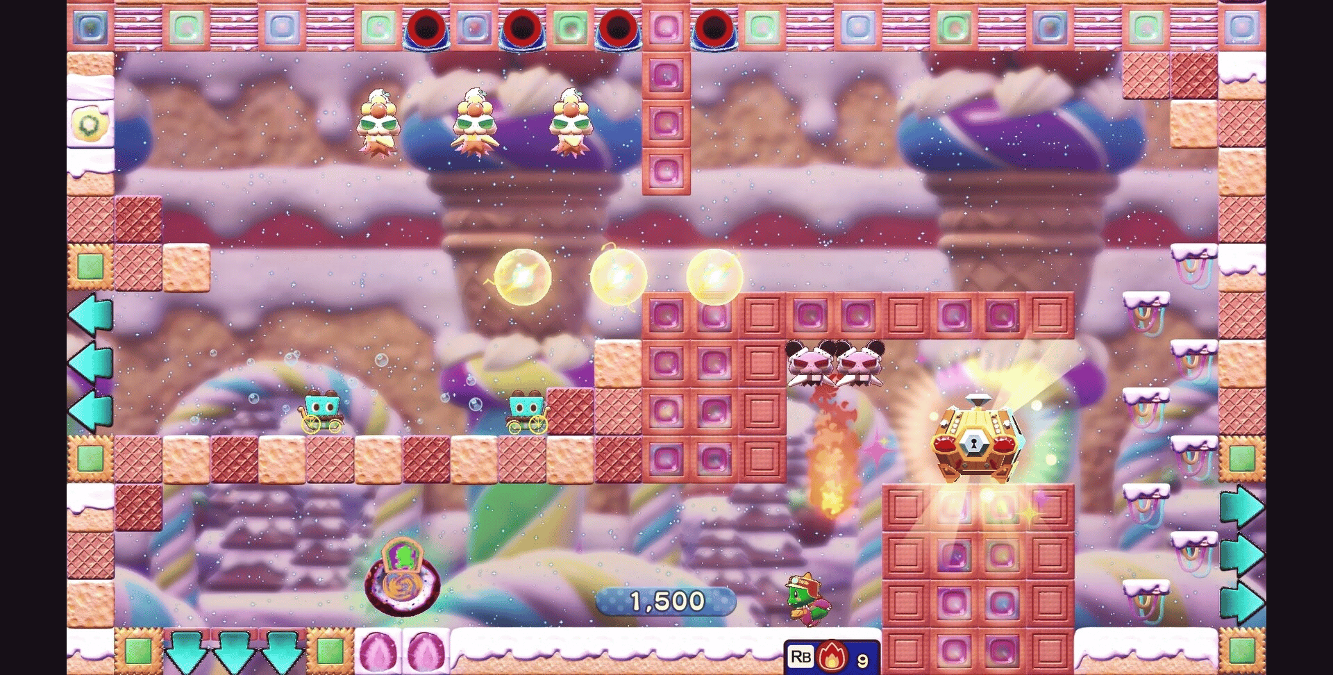 Adventure again and again! Get stronger! The first step-up Bubble Bobble in the series! Go on an adventure through strange dungeons that change every time you step inside!