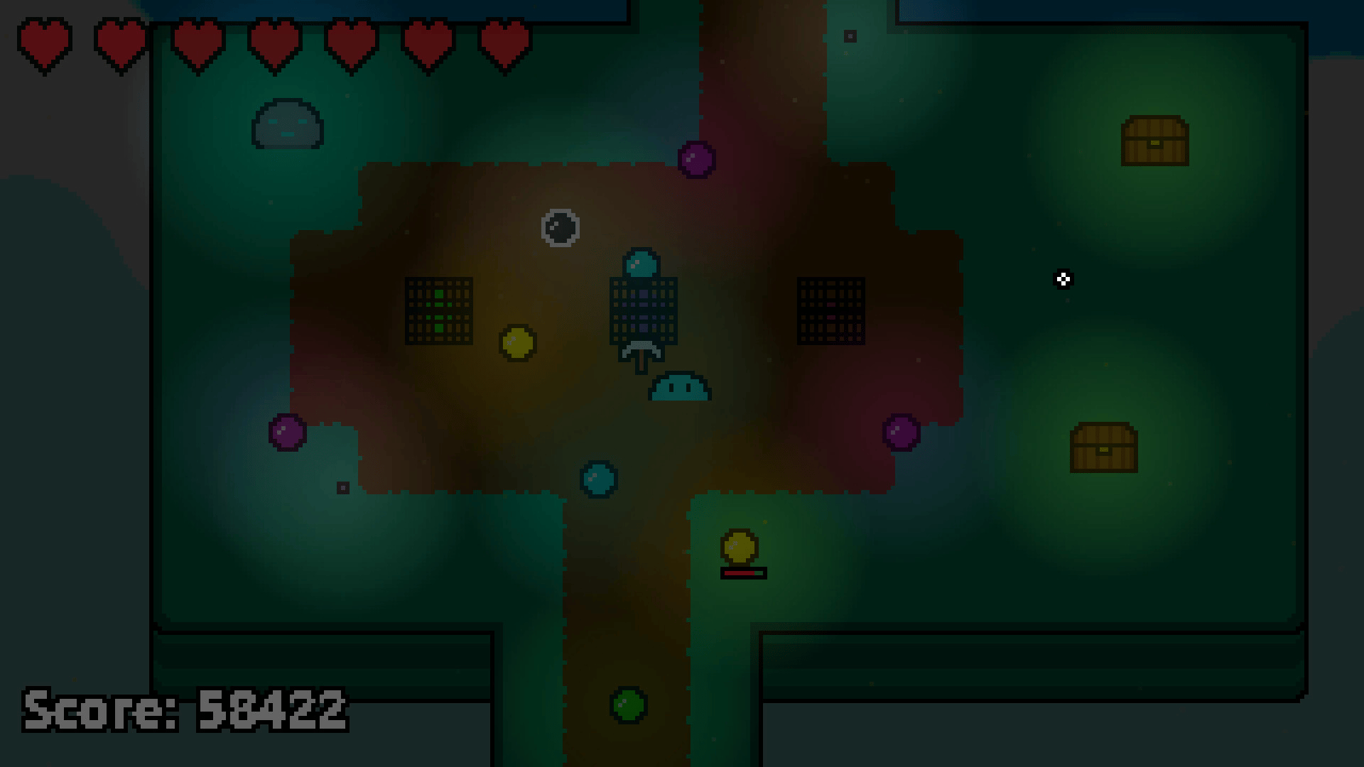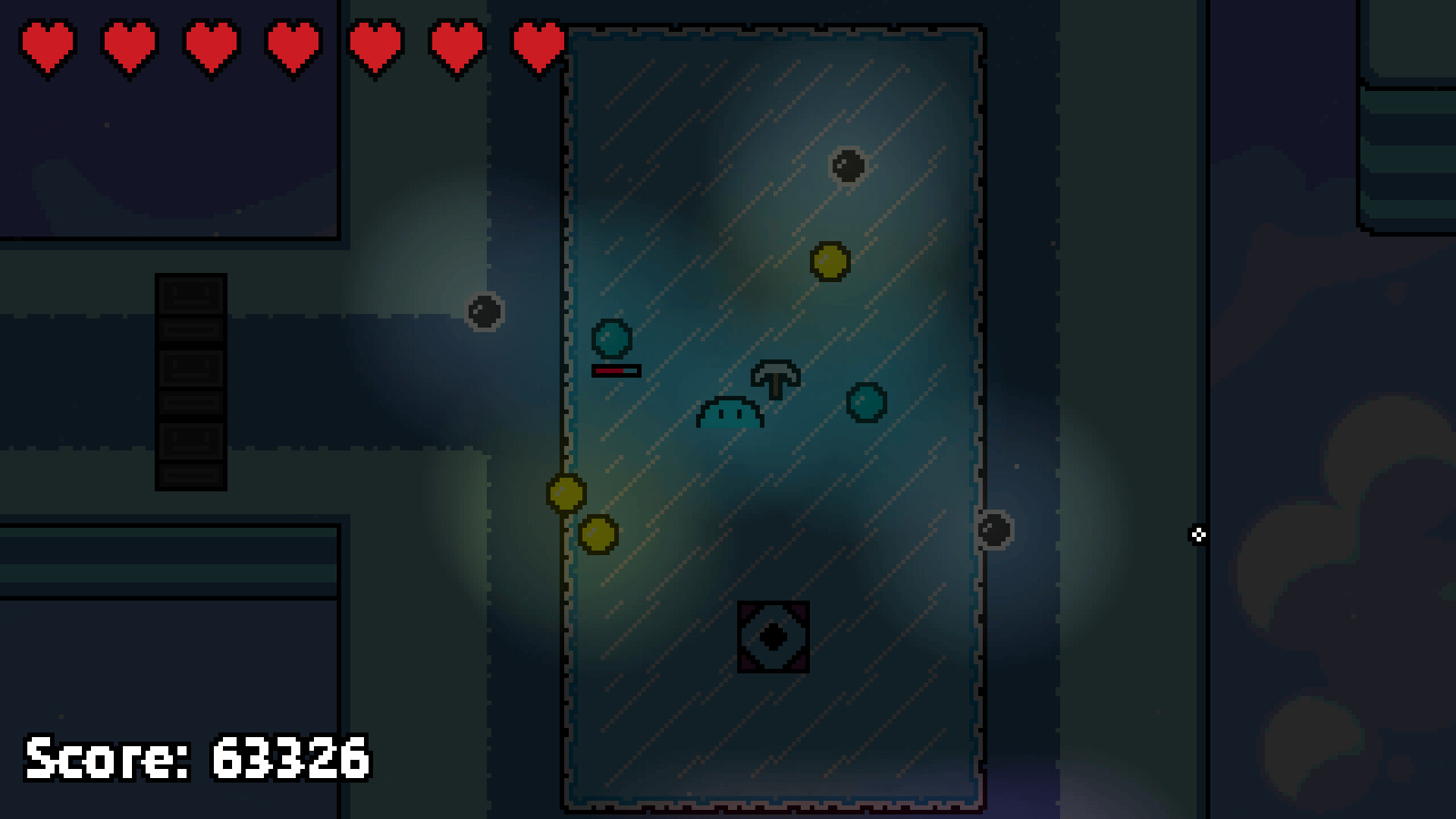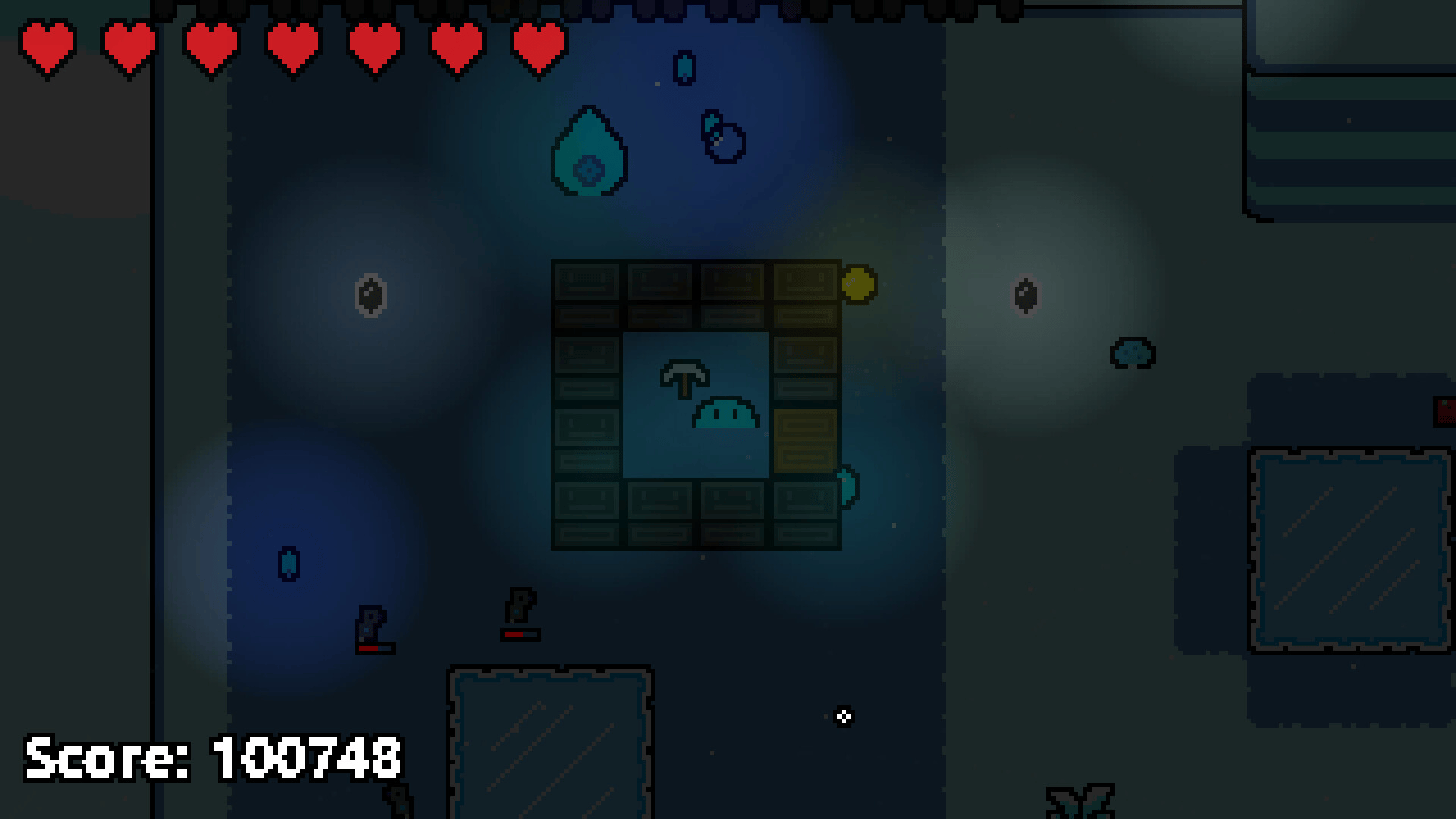 SlimeCraft is a 2.5D crafting roguelike where the player mines objects, gathers resources, and crafts items to defend themself against waves of enemies in order to continue their journey exploring new worlds as a blue slime.
