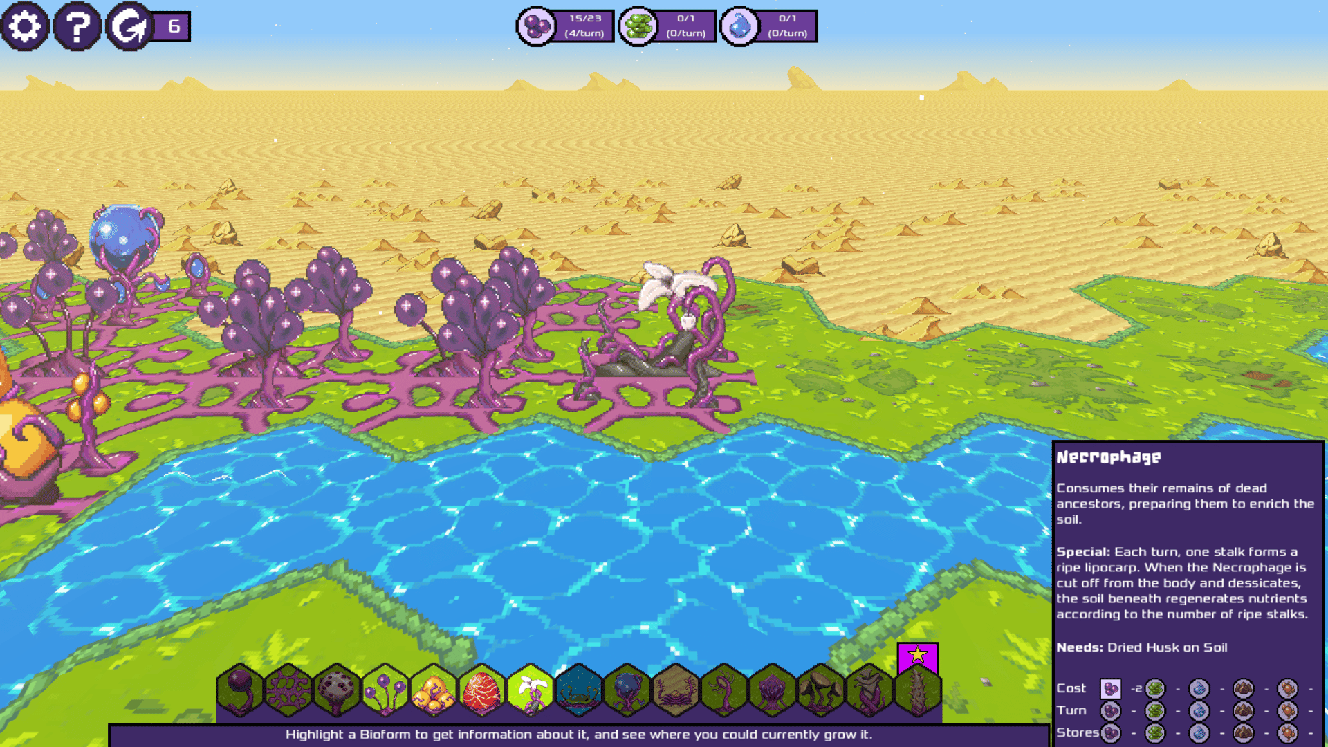 A bite-sized resource management puzzle, inspired by engine-building board games and the weird world of real-life slime molds, fungi, and lichen.